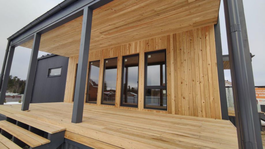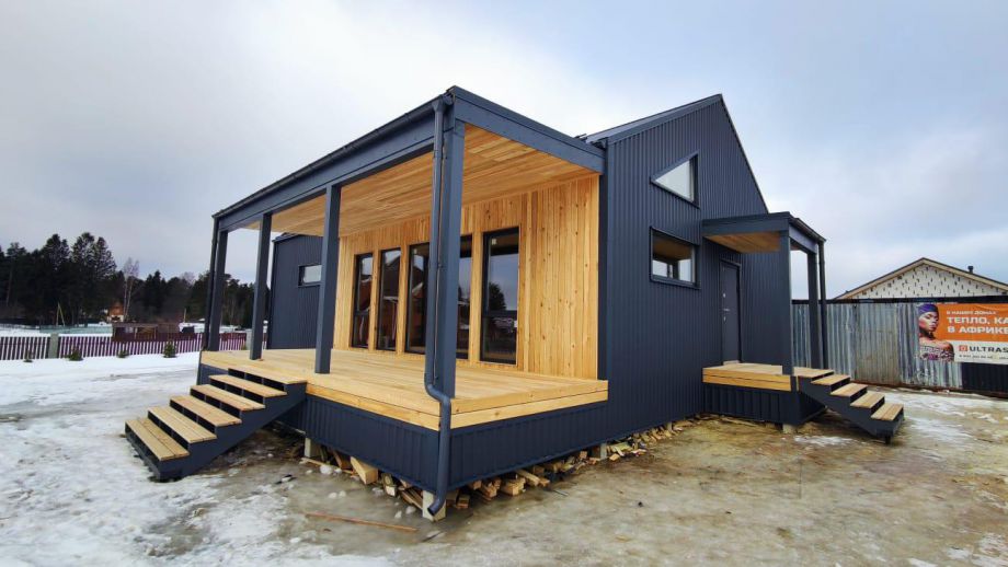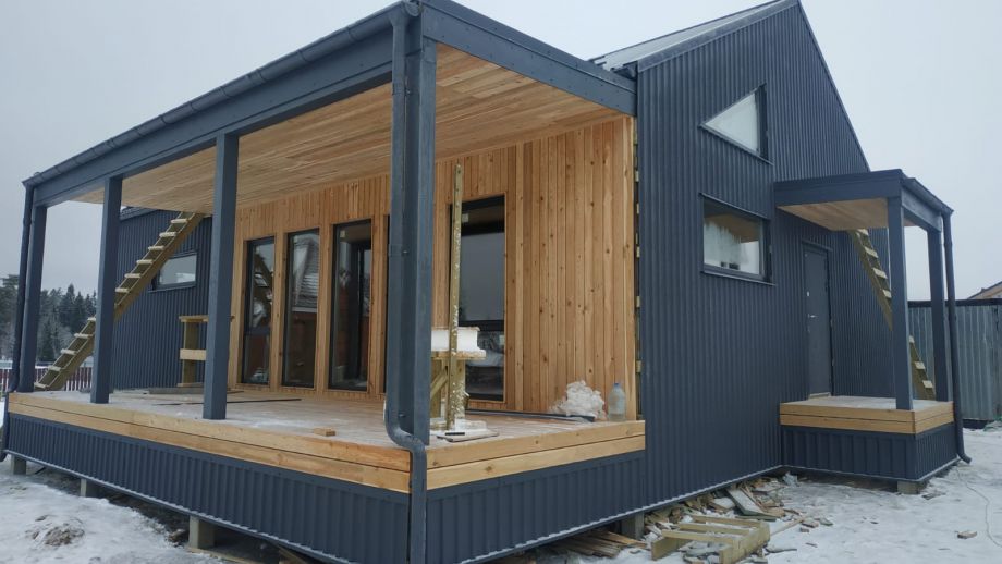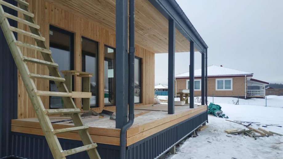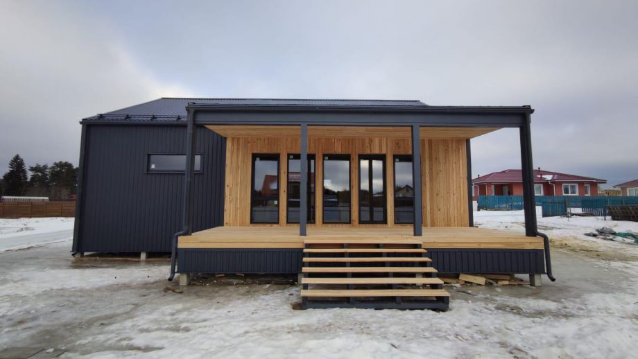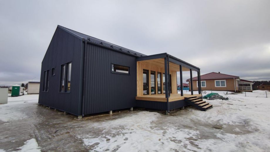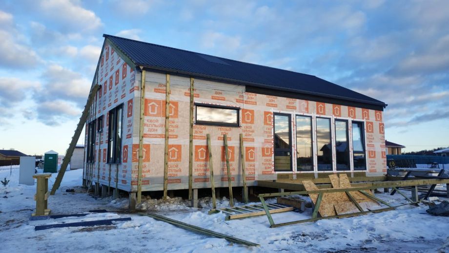 Барнхаус, или Барн ( Barn) в ипотеку от ДОМ.РФ ? Это абсолютно реально, и даже становится для нас привычным. Мы построили этот барн в Шапках, что под Санкт-Петербургом. В доме мы предусмотрели кухню-гостиную площадью 32м2., три комнаты, два санузла, техпомещение "под газ" и компактную удобную террасу. Проект индивидуальный - дом "вписан" в участок, учтено все - инсоляция, вид из окон, наличие шумных соседей и шумных трасс по соседству, учтены все пожелания его будущих хозяев. Дом построен в комплектации Оптимум - это закрытый теплый контур с фасадом, окнами, вентпакет УЛЬТРАВЕНТ с кухонной вытяжкой, чердачная лестница, система снегозадержания и водосточная системой, фундамент - забивные железобетонные сваи, и конечно доставка, комплектующие и качественная сборка дома под надзором инженера технадзора.