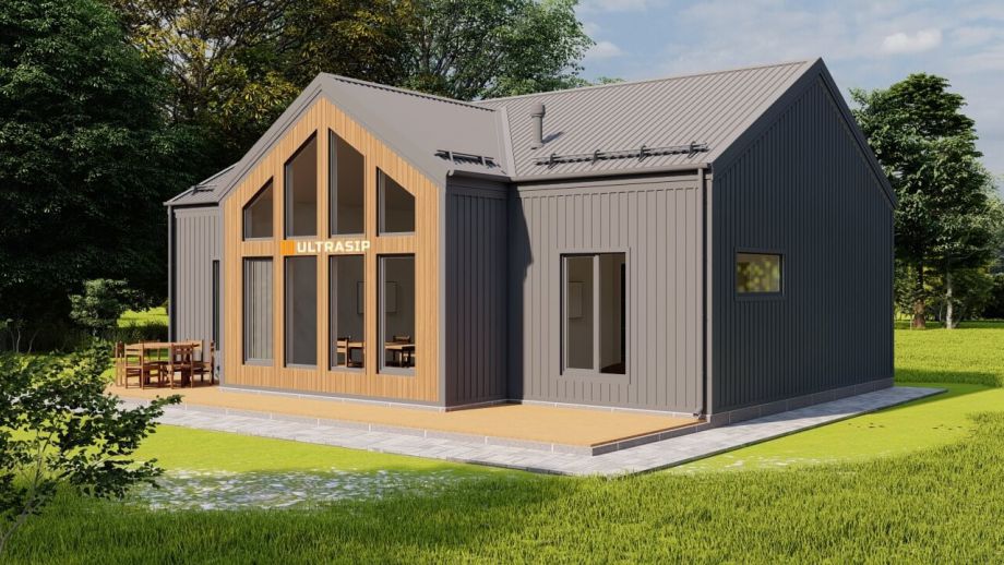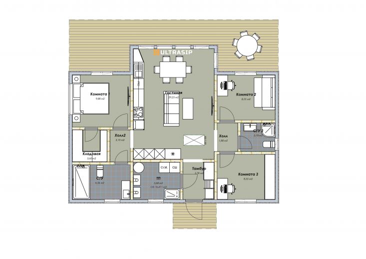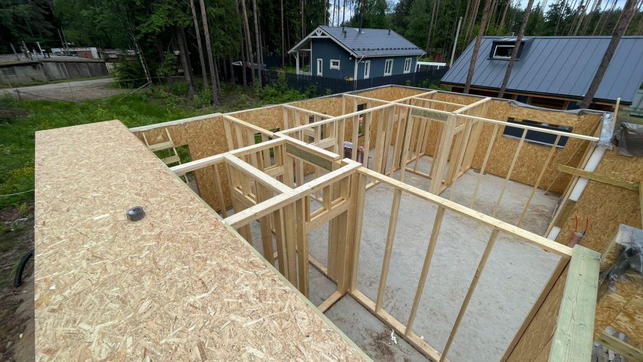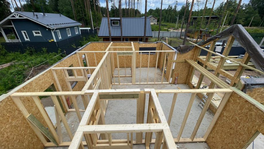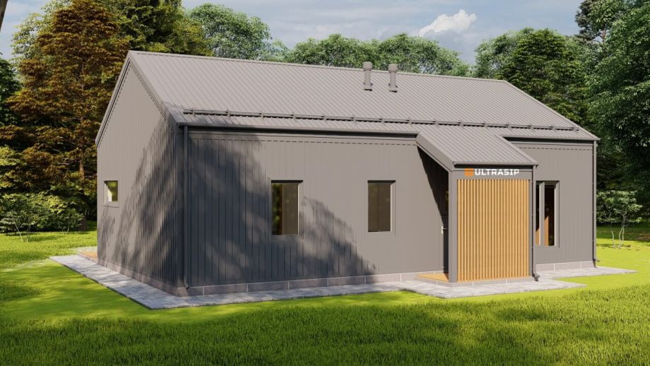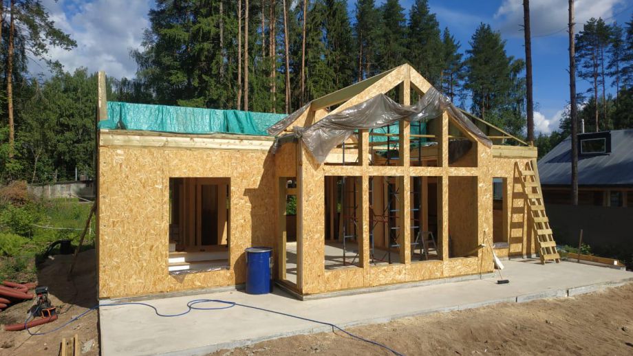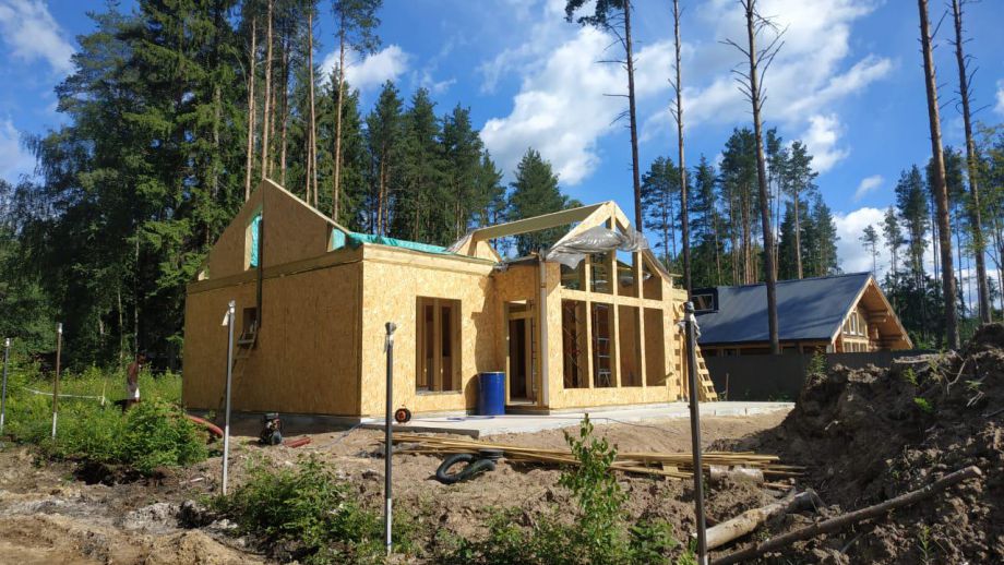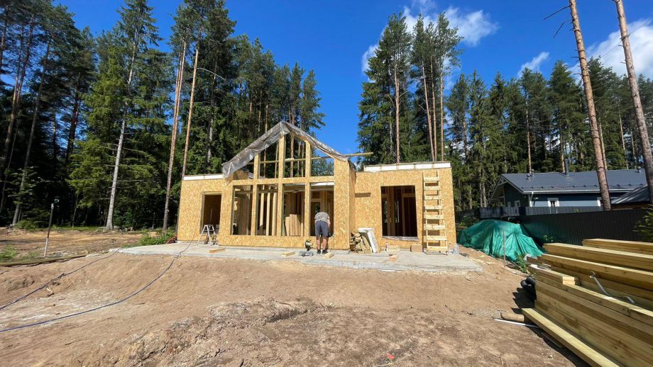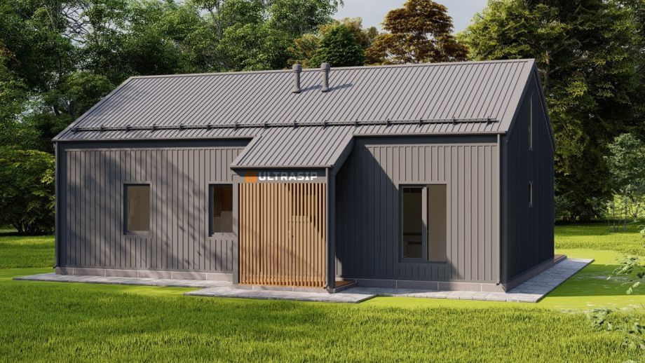 Фундамент дома - УШП, Утепленная Шведская Плита, смонтирован нами заблаговременно. В указанную цену входит УШП и дом в комплектации Оптимум - это закрытый теплый контур с фасадом, окнами, входной дверью, вентпакетом УЛЬТРАВЕНТ, системами снегозадержания и водостока, террасой, без внутренней отделки.