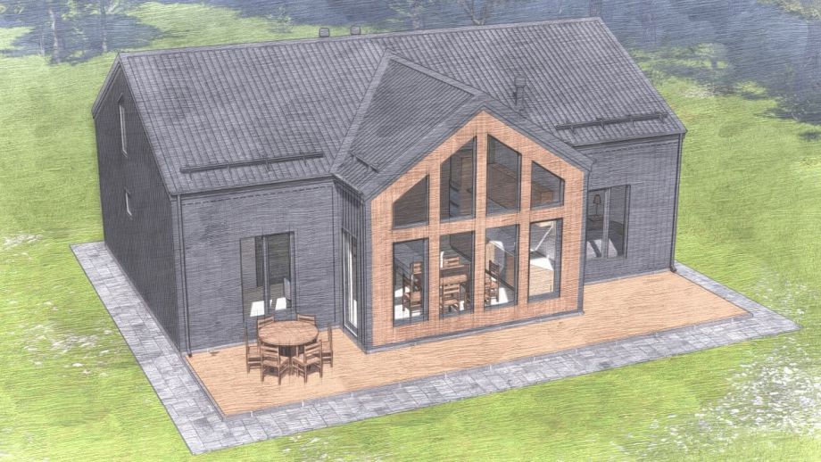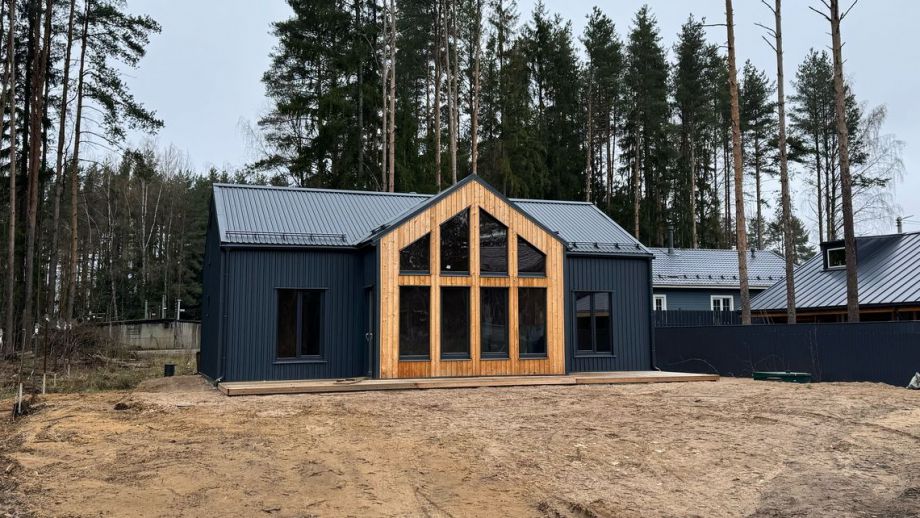 Эффектный внешний вид и проверенный конструктив - таков наш новый барнхаус в ипотеку во Всеволожске. Предусмотрено все, что нужно для комфортной жизни - кухня-гостиная площадью 30м2 со "вторым светом", большая открытая терраса, два санузла, гардероб, техпомещение и три жилых комнаты. Конструктивно дом разделен на две половины - семейная (мастер-спальня слева, и детская/гостевая - комнаты справа). Дом "вписан" в участок, учтены пожелания заказчиков, инсоляция, вид из окон, расположение заезда, наличие шумных соседей и трасс по соседству и еще множество нюансов.