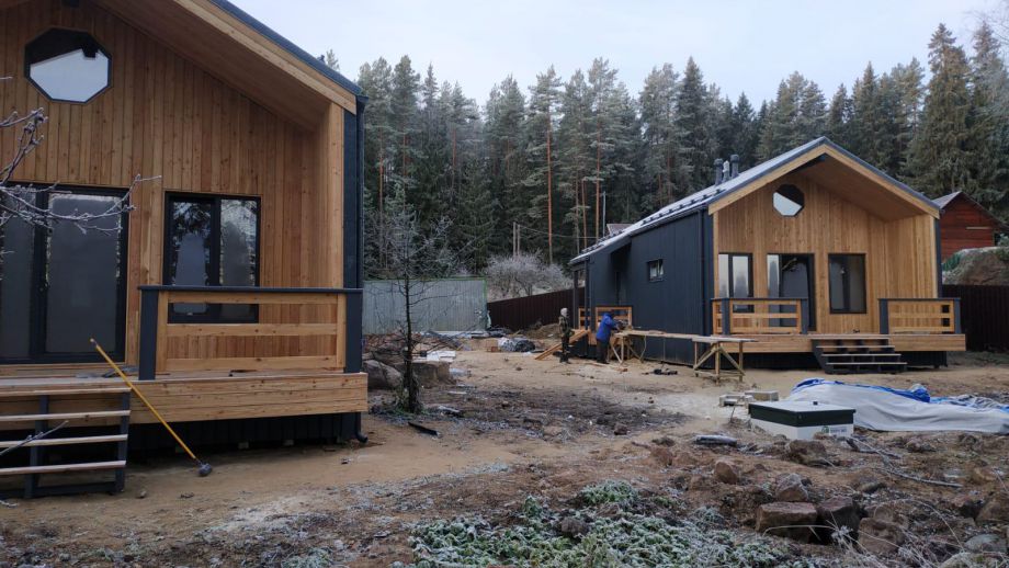 Построили первые два дома под сдачу в живописнейшем месте под Выборгом. В доме - кухня-гостиная площадью 22м2. две комнаты, просторный санузел и уютная небольшая терраса с видом на водоем. Дома построены в комплектации Оптимум - это закрытый теплый контур с фасадом, террасой, окнами, чердачной лестницей, системами снегозадержания и водосточной, вентпакетом УЛЬТРАВЕНТ, фундаментом, и конечно доставкой, комплектующими и качественной сборкой дома под надзором инженера технадзора.