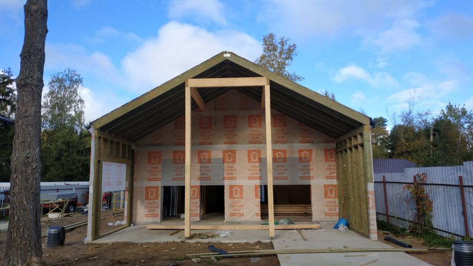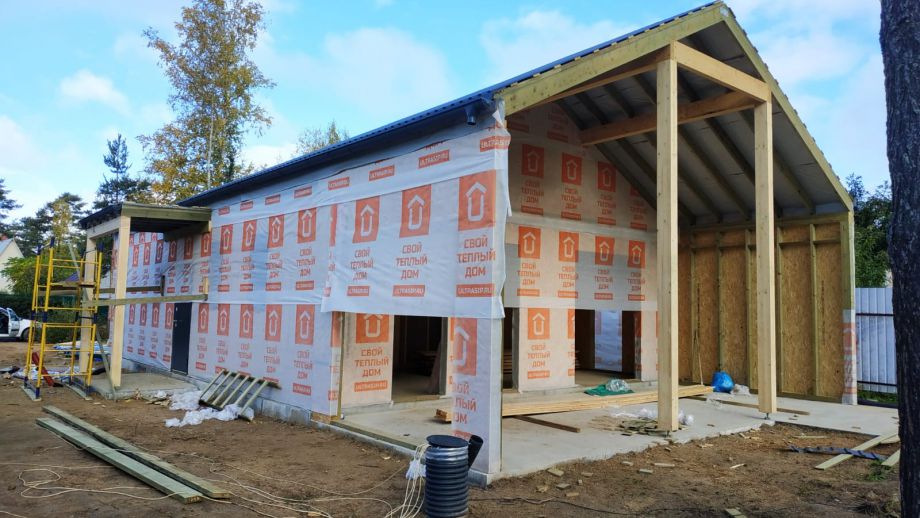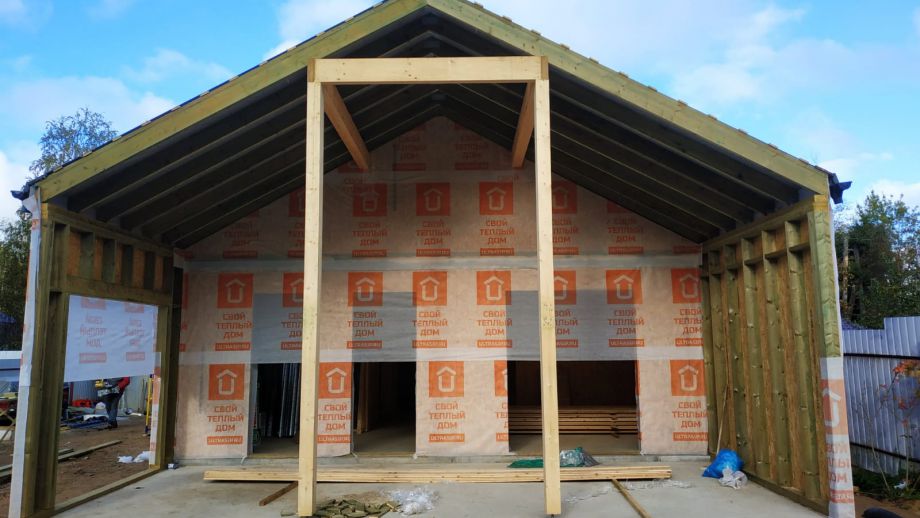Фундамент дома - УШП, Утепленная Шведская Плита, смонтирован нами заблаговременно. В указанную цену входит УШП и дом в комплектации Оптимум - это закрытый теплый контур с фасадом, окнами, вентиляцией, системами снегозадержания и водостока, но без внутренней отделки.