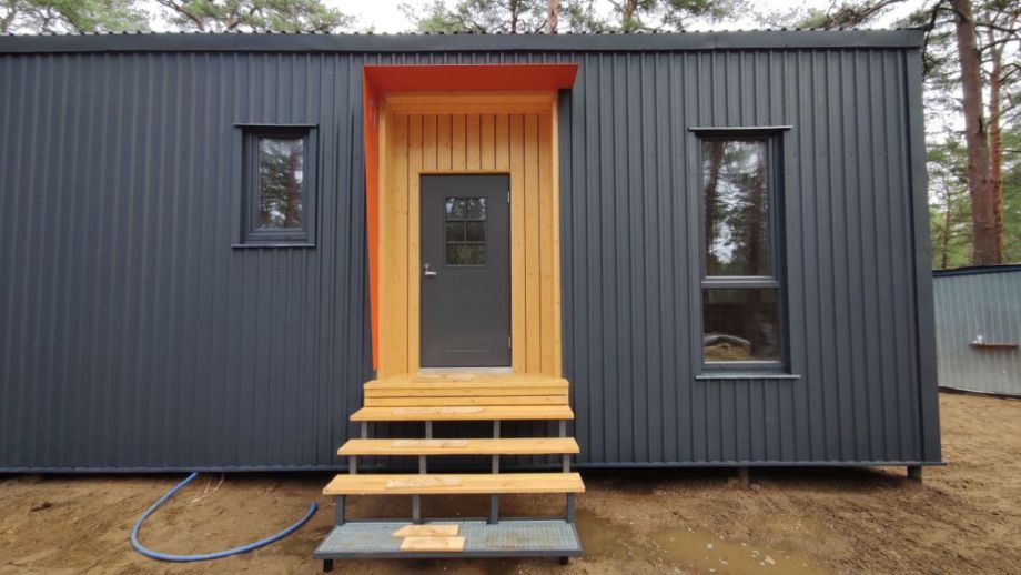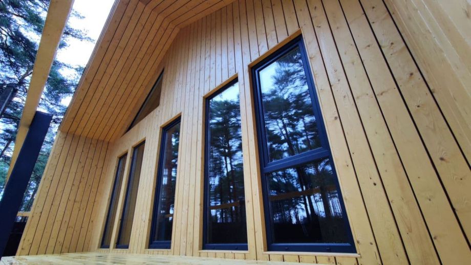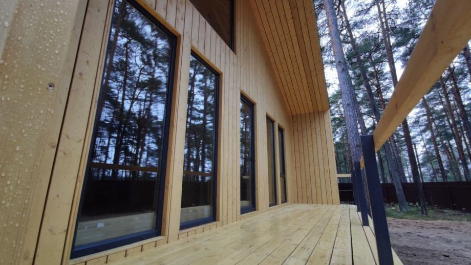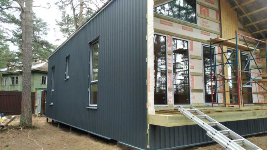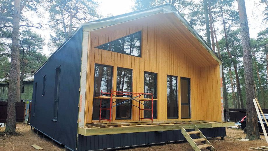 В указанную стоимость входит дом с фасадом, окнами и финской дверью.