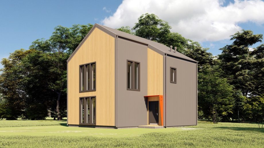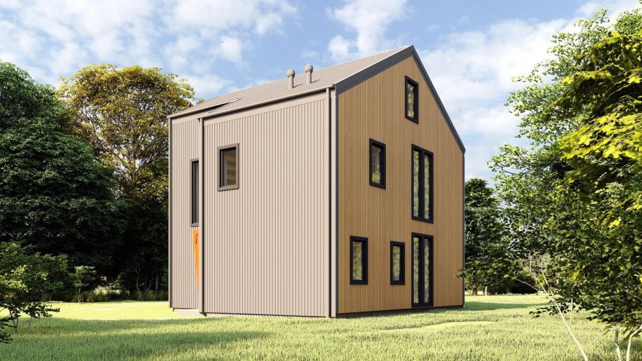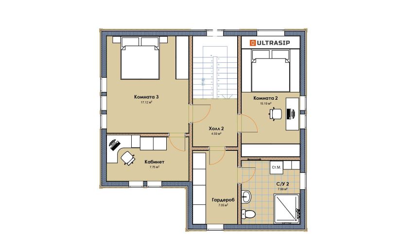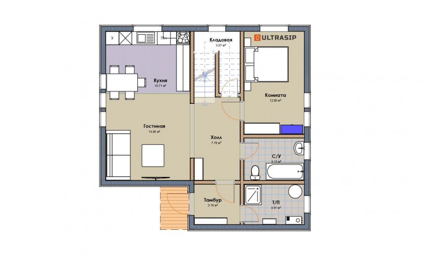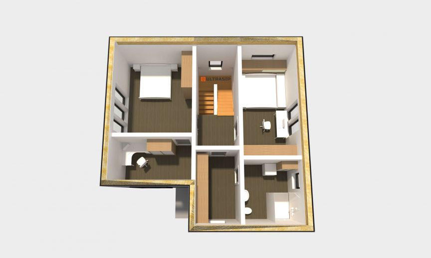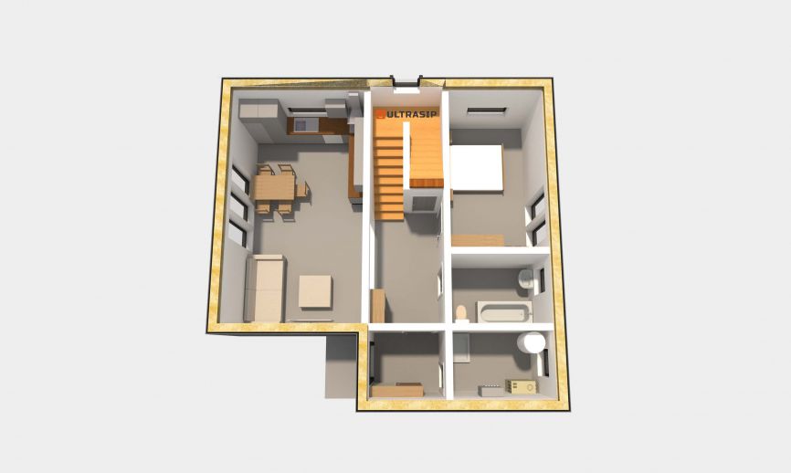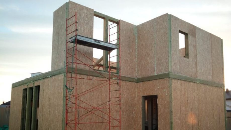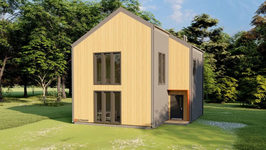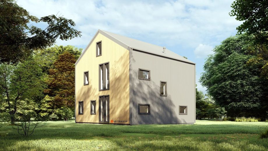 Необычный барнхаус на УШП мы построили в пригороде Москвы, деревне Рогозинино. Это дом с уникально теплым конструктивом - толщина панелей перекрытия - 324мм. с утеплением 300мм. ППС (!), вот подробная статья об этих панелях. В стенах применены панели толщиной 224мм. Такой конструктив получил собственное название Оймякон-ULTRA. В России на сегодня построено 6 таких домов, все они построены компанией ULTRASIP.