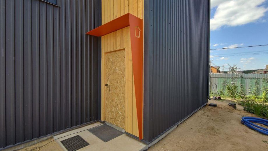 Оцените стильный консольный металлический козырек над входом - это решение впервые было применено нами в барнхаузе ULTRABARN.