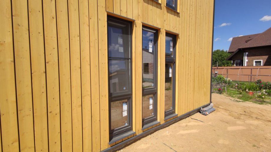 - немецкие окна Schuco Corona цвета «антрацит» (70 мм, 5 камер, коэфф. сопр. теплопередаче – 0,85 м2°С/Вт, двухкамерный энергосберегающий стеклопакет X-ONE Multi 40 мм., армирование 2 мм, противовзломная ручка Schüco, фурнитура Schüco Variotec). Монтаж изделий по ГОСТу, с применением гидроизоляционной и пароизоляционной мембран.