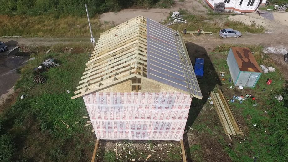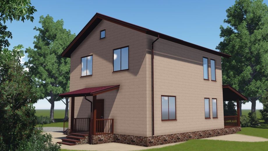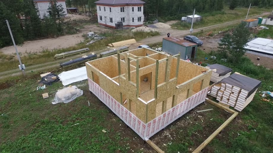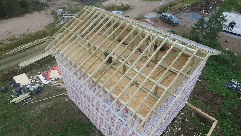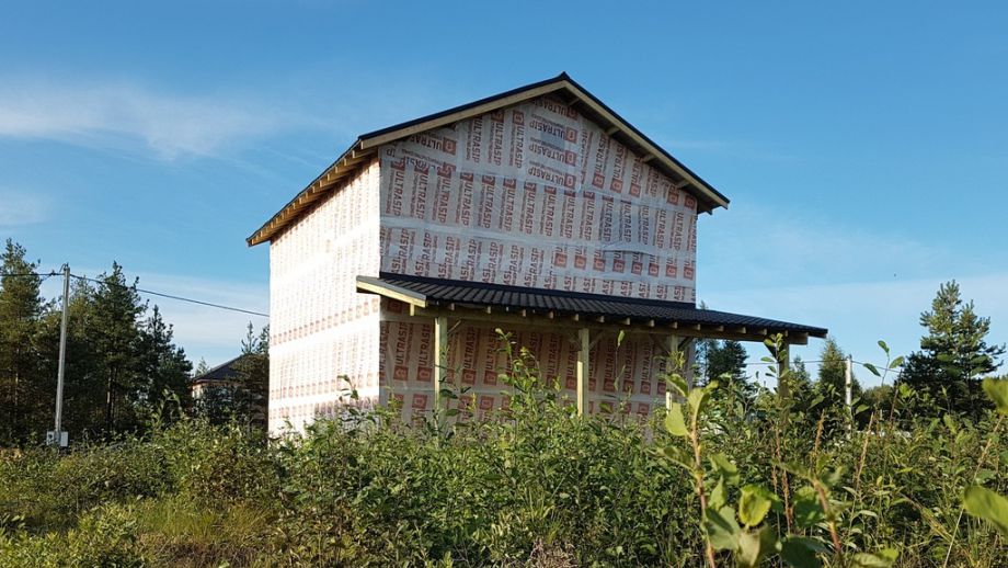 Высота стен первого этажа - 2,8 и второго этажей - 2,5 метра. Фундамент на винтовых сваях диаметром 108 мм. Домокомплект из СИП панелей ULTRASIP® EXTRA (OSB-3 Калевала 12 мм, пенопласт ППС-17 высокой реальной плотности - 17,5 кг/м3). Нулевое и чердачное перекрытие - SIP панели толщиной 224 мм, межэтажное - по каркасной технологии. Наружные стены из СИП-панелей 174 мм. Перегородки внутри - каркасные, обшиты ОСБ 12 мм. Пиломатериал, применяемый при сборке дома - камерной сушки влажностью 10-16%, простроган на четырехстороннем станке, и заранее, в цеху, обработан антисептиком. Почему это действительно важно - подробно описано здесь.