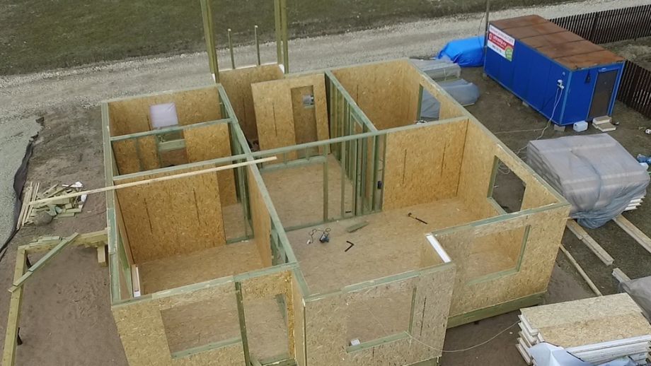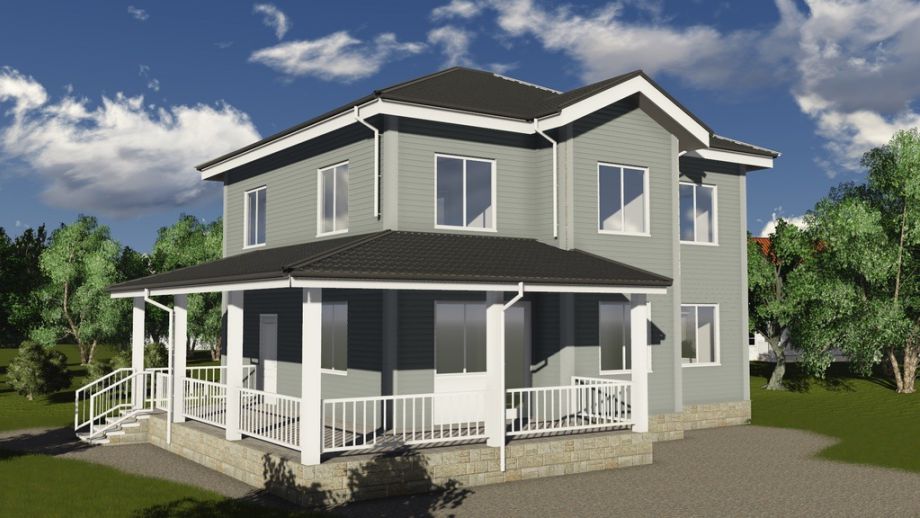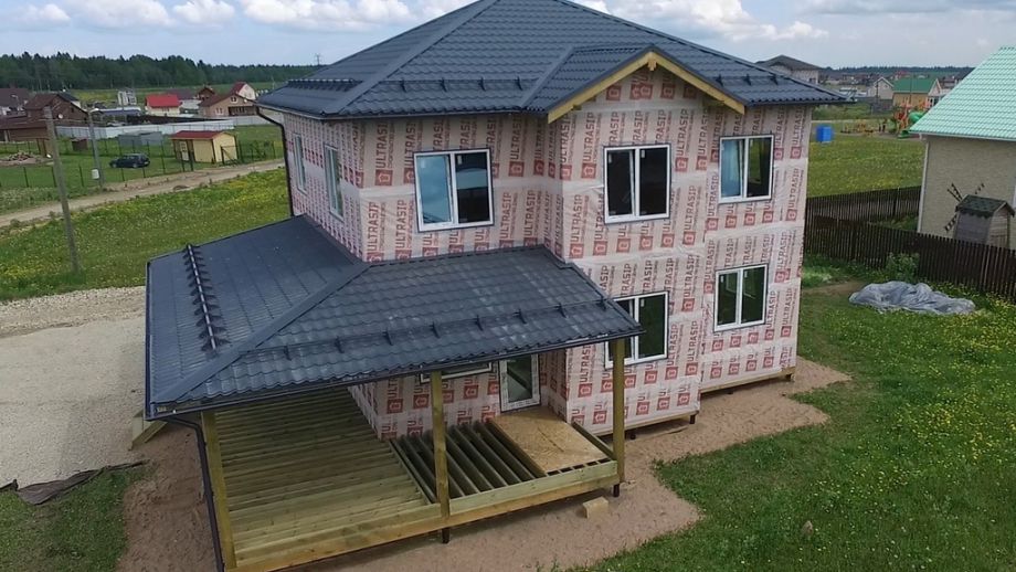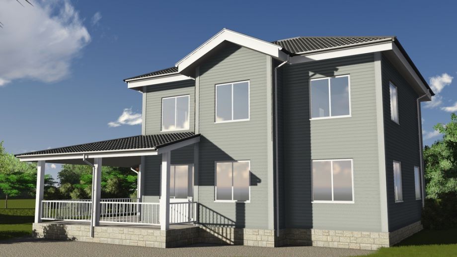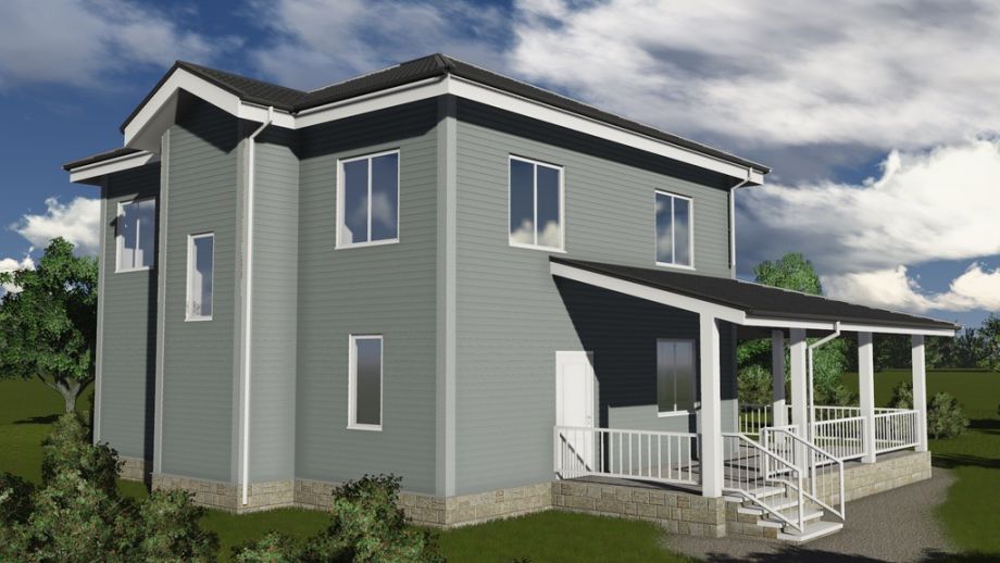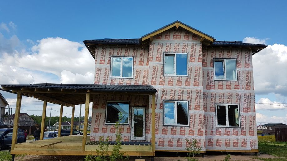 Этот дом мы построили по увеличенной версии популярного проекта Оптимум - Оптимум плюс. Фундамент на винтовых сваях диаметром 108 мм., обвязанных антисептированным брусом 200х200 мм. Домокомплект из СИП панелей ULTRASIP® EXTRA (OSB-3 Калевала 12 мм, пенопласт ППС-17 высокой реальной плотности - 17,5 кг/м3). Нулевое и чердачное перекрытие из SIP панелей 224 мм, несущие стены из СИП-панелей 174 мм. Внутренние перегородки выполнены по каркасной технологии - стойки 45х145 с шагом 625 мм. и обшиты с одной стороны ОСБ. Традиционно для нас - пиломатериал на конструктив дома применен камерной сушки влажностью 10-16%, откалиброванный на четырехстороннем станке и заранее обработанный антисептиком.