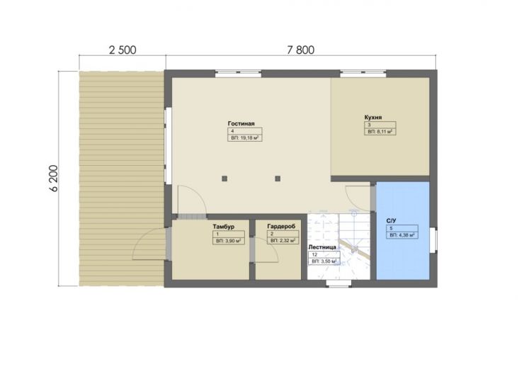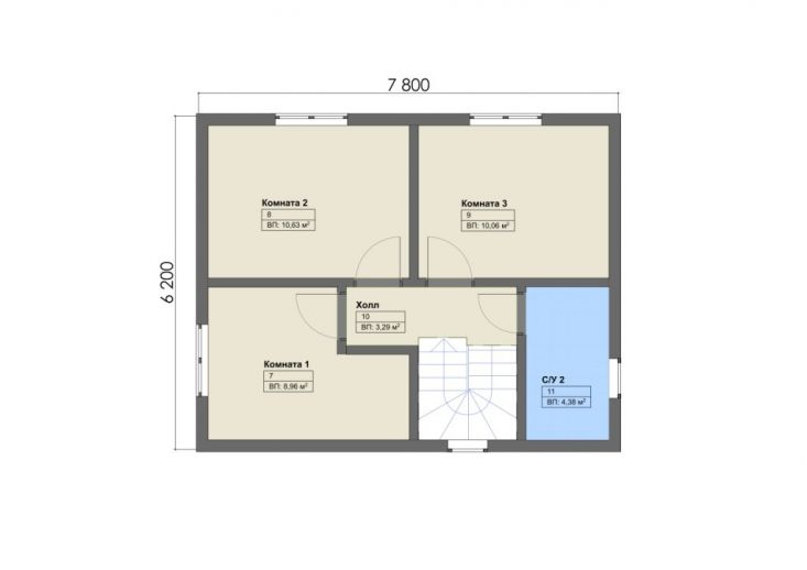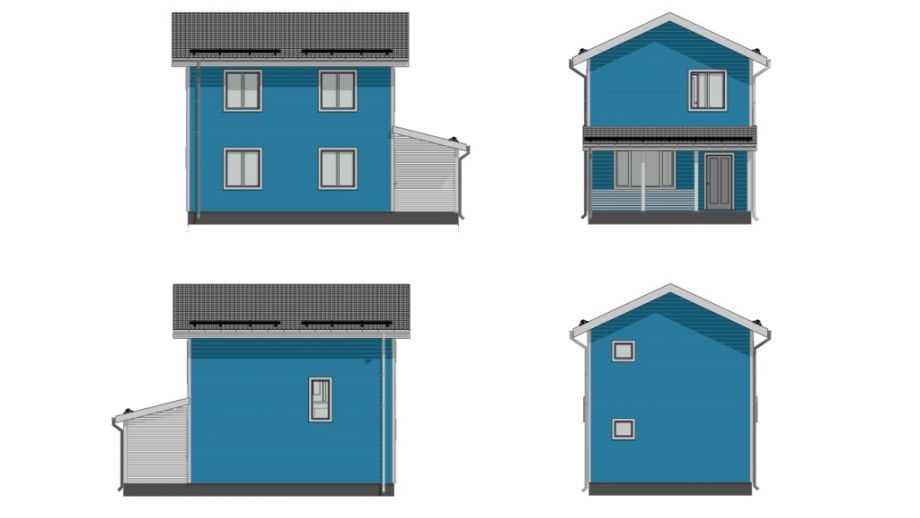 Несмотря на откровенно небольшую для частного дома площадь, в проектом предусмотрено 3 спальни, 2 санузла, кухня-гостиная площадьб 27 м2 и терраса площадью 16 м2.