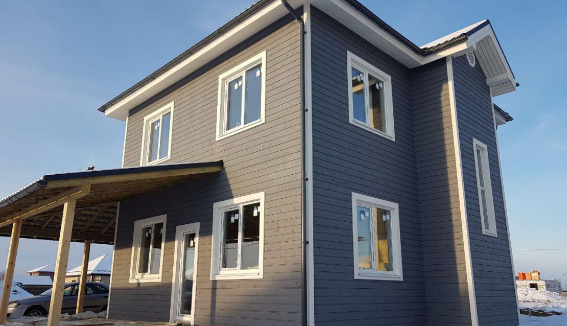 Фасад дома (не входит в цену) – покрашенная в заводских условиях фасадная доска с тонкопиленой поверхностью. Размер фасадной доски - 20х145 мм.