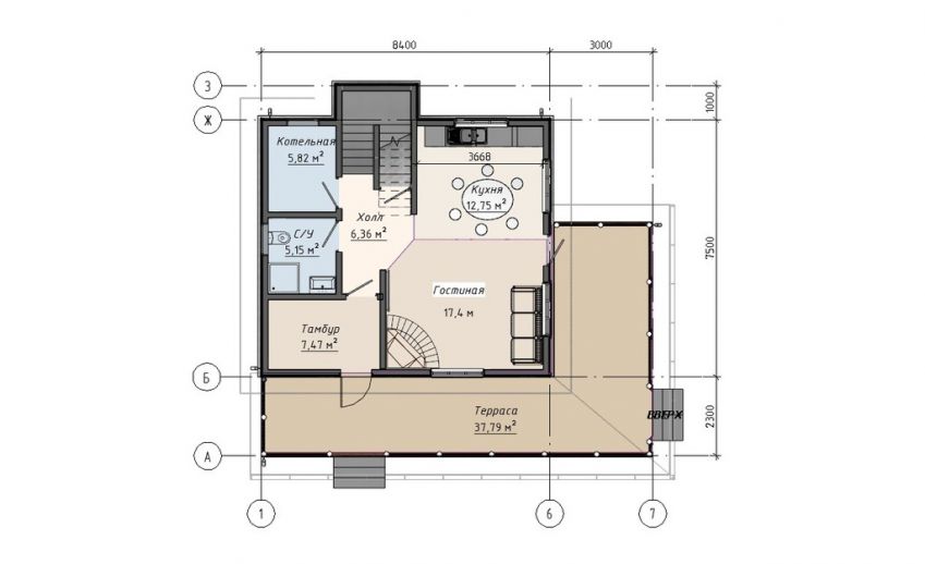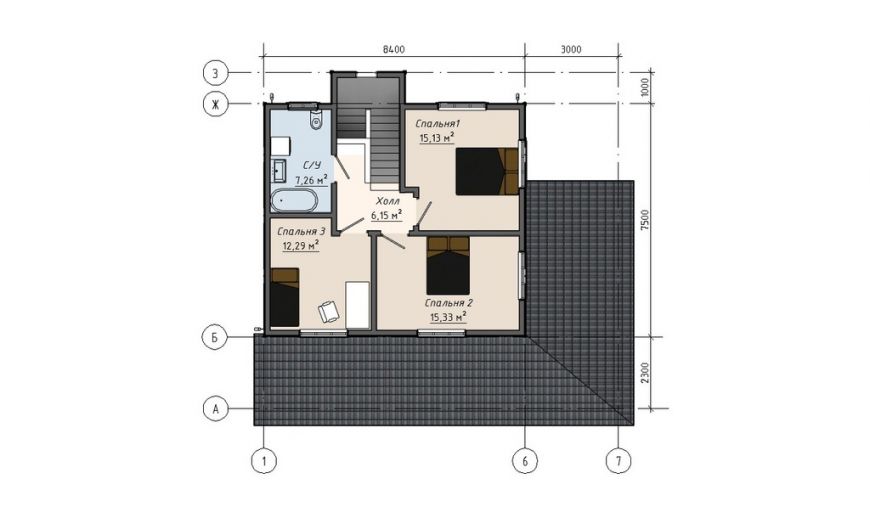 Несмотря на небольшие размеры дома, в доме три спальни, два санузла и достойная кухня-гостиная площадью 30м2.