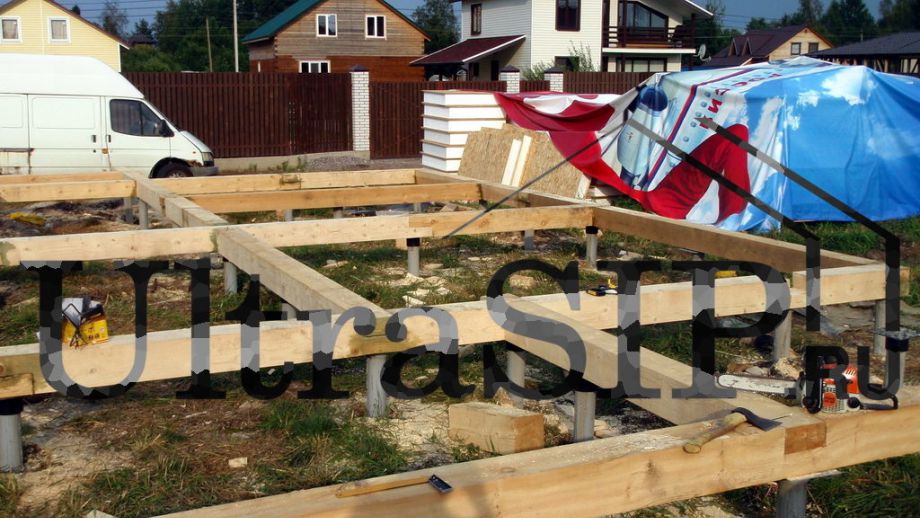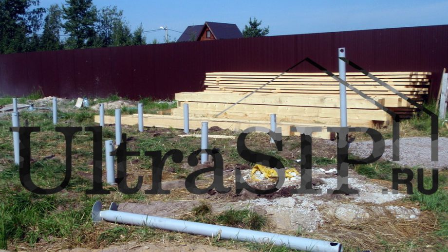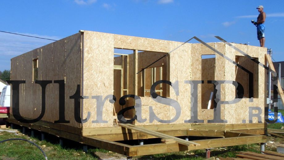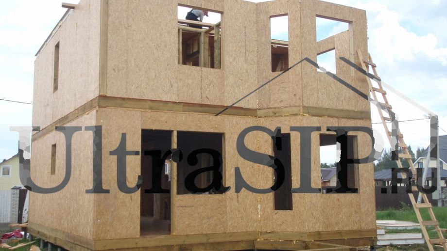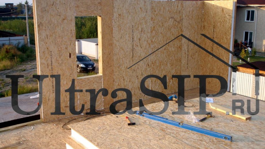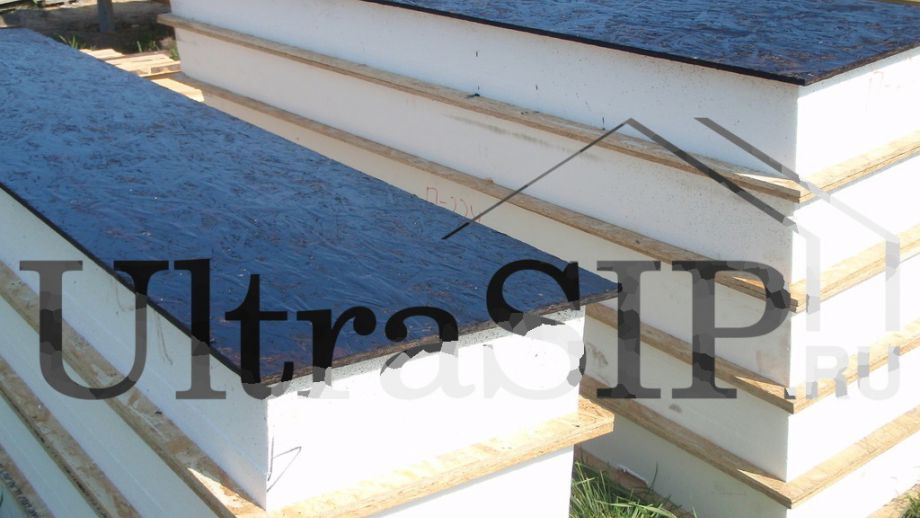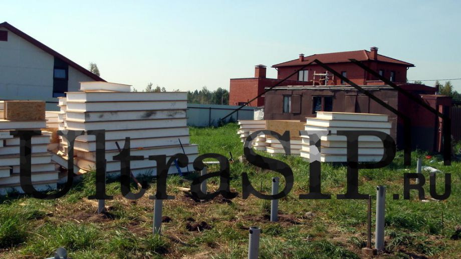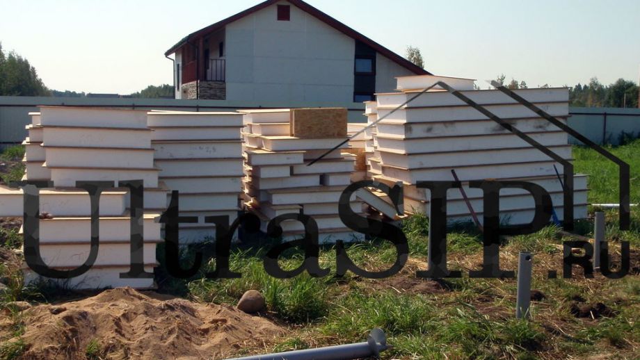 Домокомплект из СИП ждет сборки. На нулевое перекрытие и перекрытие второго этажа идут более толстые панели.