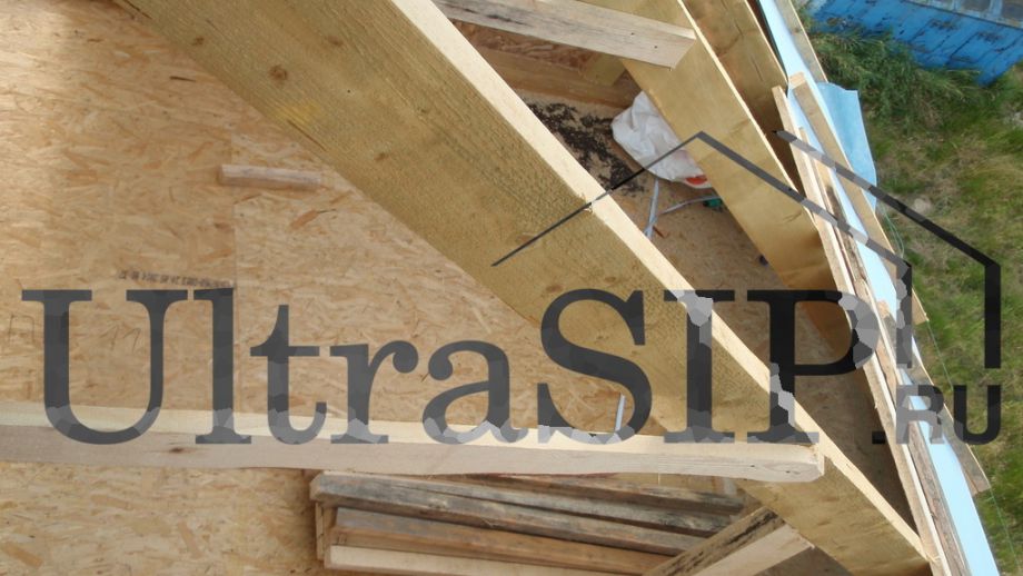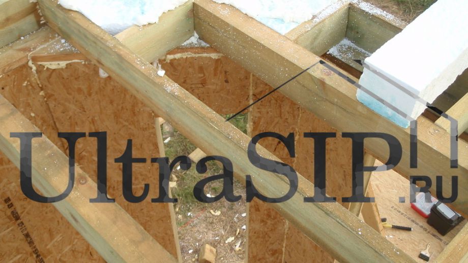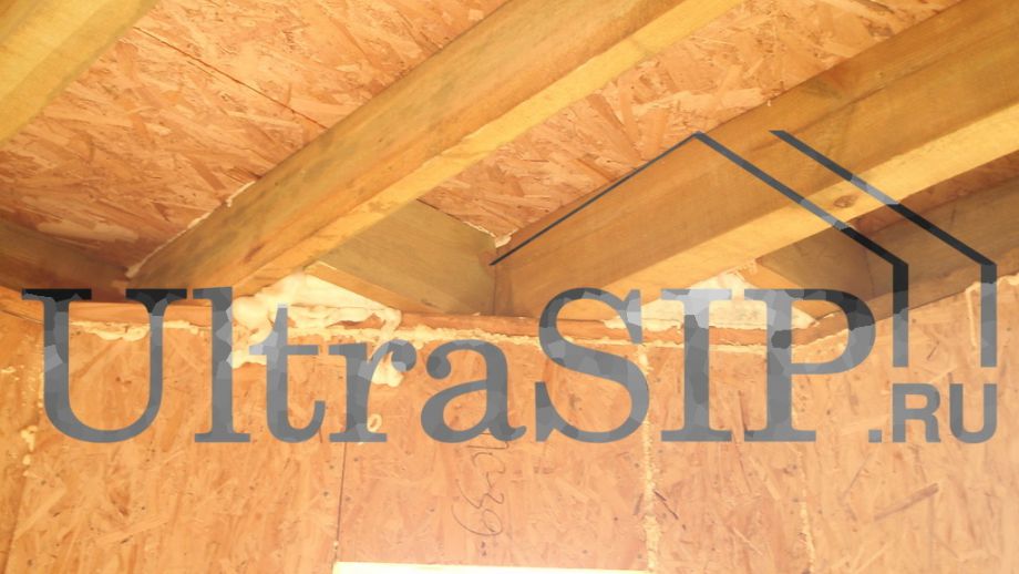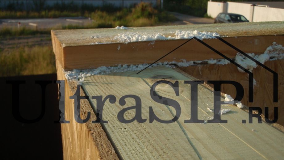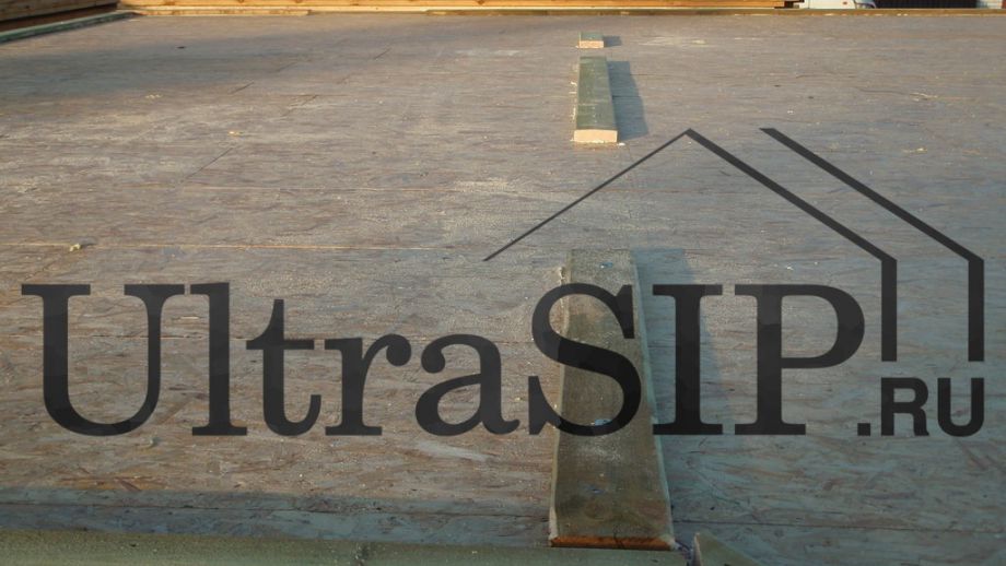 СИП-панели нулевого перекрытия, напиленные вдоль. Это сделано для того, чтобы чаще, с шагом в 625 мм, запустить брус в толщу перекрытия. Это придаст конструкции перекрытия из SIP большую жесткость.