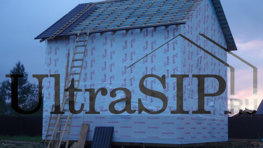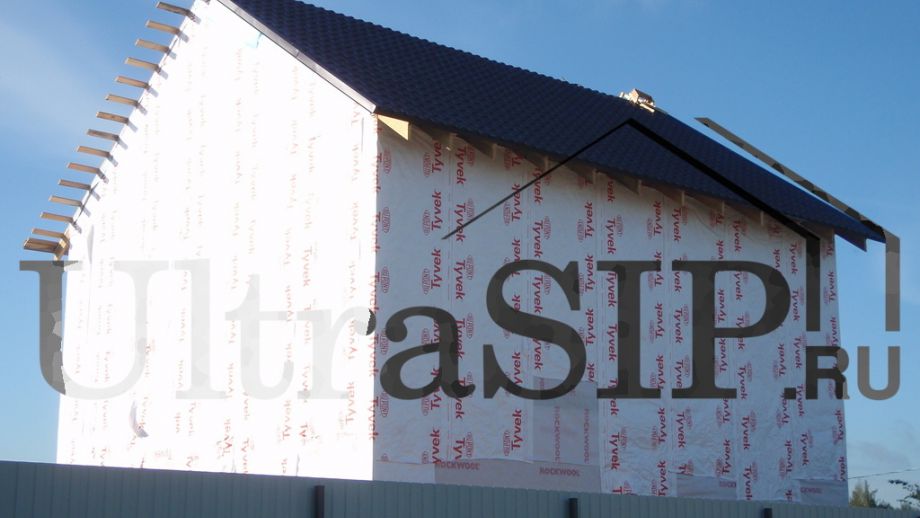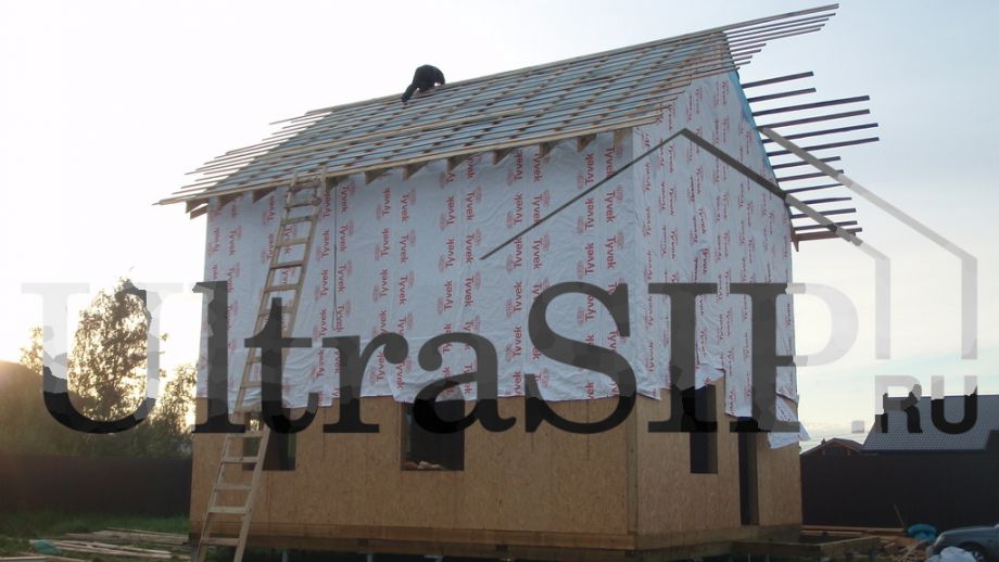 Стены частично уже защищены 'модной' (и недешевой) мембраной 'Тайвек'. Вешать ее по вертикали не очень-то правильно, но в данном случае - значительно технологичнее.