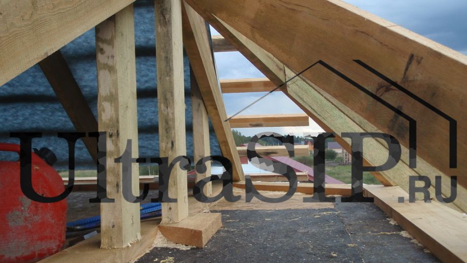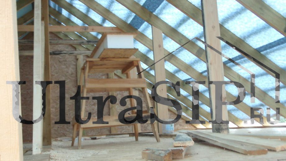 Будущему владельцу этого дома организация объема чердака была не слишком важна - достаточно места в доме. Если вы планируете в своем доме подобный 'холодный' чердак, но хотите сделать его более удобным, имеет смысл уточнить этот момент при проектировании. Пойдя на чуть большие затраты, в конструкции стропильной системы можно избавиться от центральных стоек, что позволит значительно более эффективно использовать пространство чердака.
