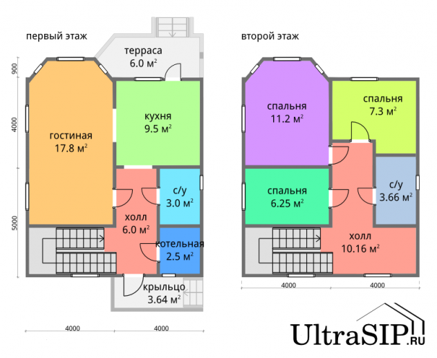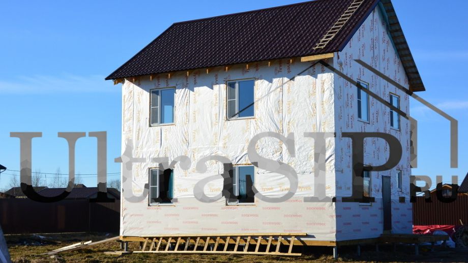 На берегу Ладоги, в курортном местечке Коккорево мы построили дом из SIP-панелей. Панели на нулевое и чердачное перекрытия - толщиной 224мм, стеновые - 174мм (OSB-3 Калевала 12 мм, пенопласт завода "Новопласт" ПСБ -С25Ф высокой реальной плотности - от 16,7 кг/м3, клей ПУР производства BASF, Германия). Площадь построенного дома 149 м², два полноценных этажа высотой 2,5м, холодный чердак. Кровля из металлочерепицы. Две небольших террасы. Грунт на участке - глина. Фундамент из 35 винтовых свай (длина 2.5 м, ⌀108 мм, толщина стенки 4.5 мм).