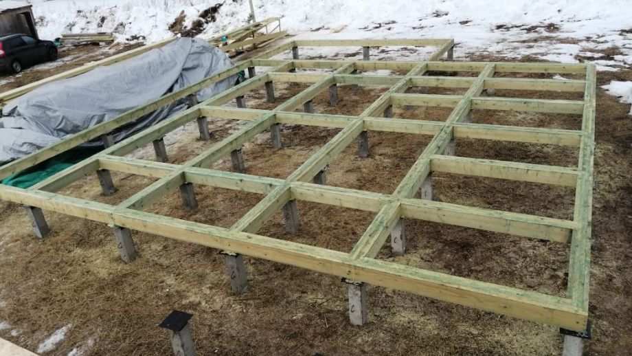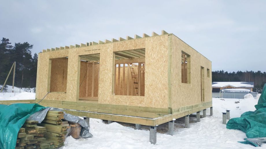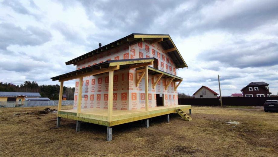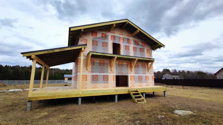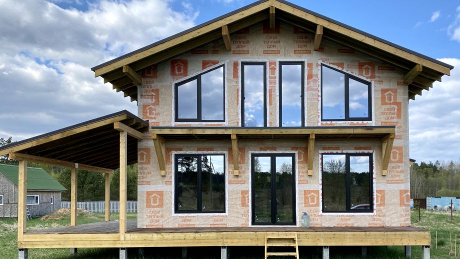 Цена указана за закрытый теплый контур - фундамент на ЖБ сваях, теплый контур, кровля, настил террасы, балкон, окна, дверь.
