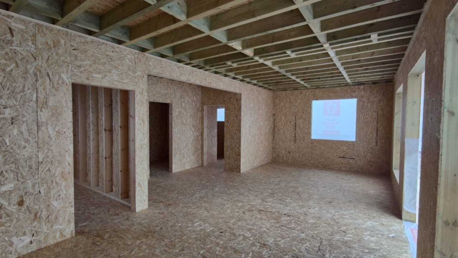 Несмотря на небольшие размеры, вместились пять комнат и немаленькая, площадью 32м2., кухня-гостиная.