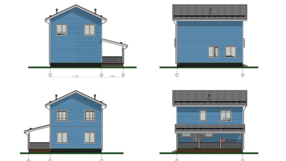 Домокомплект из СИП панелей ULTRASIP® EXTRA (OSB-3 Калевала 12 мм, пенопласт ППС-17 высокой реальной плотности - 18 кг/м3);