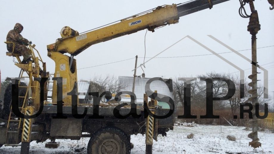 Фундамент на буронабивных сваях с обвязкой брусом 150х200. Сваи диаметром 250 мм в оболочке ПНД, уходят в грунт на 2 метра, арматурный каркас из 3-х стальных прутков по 12 мм.