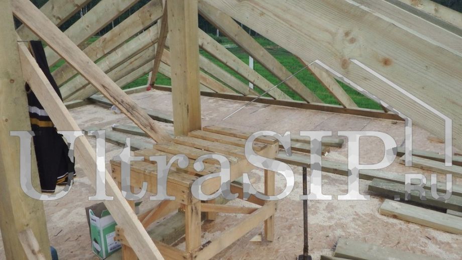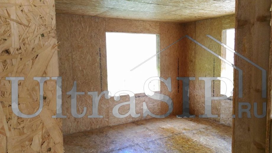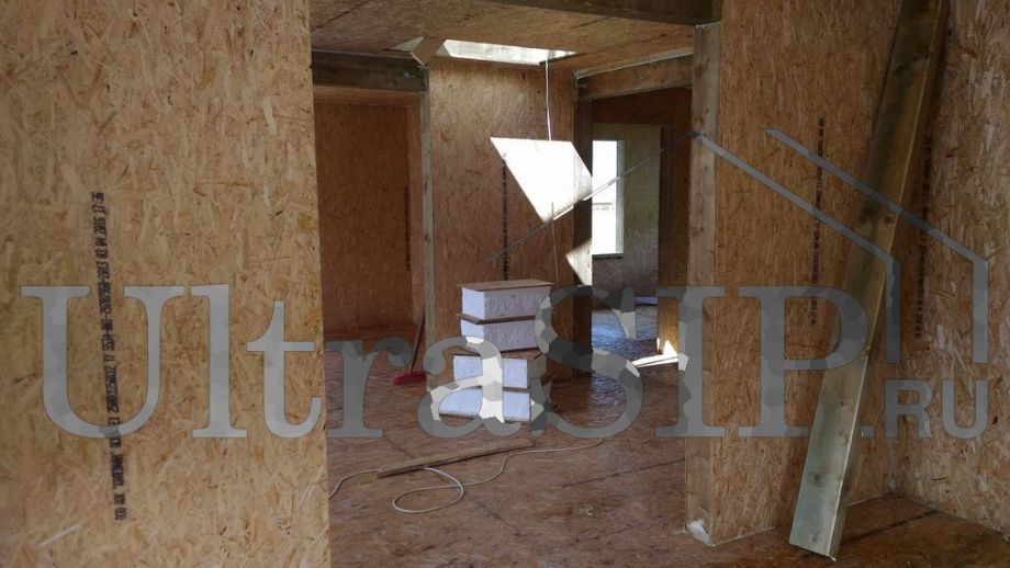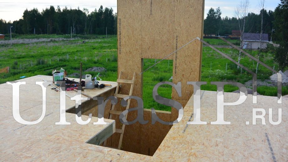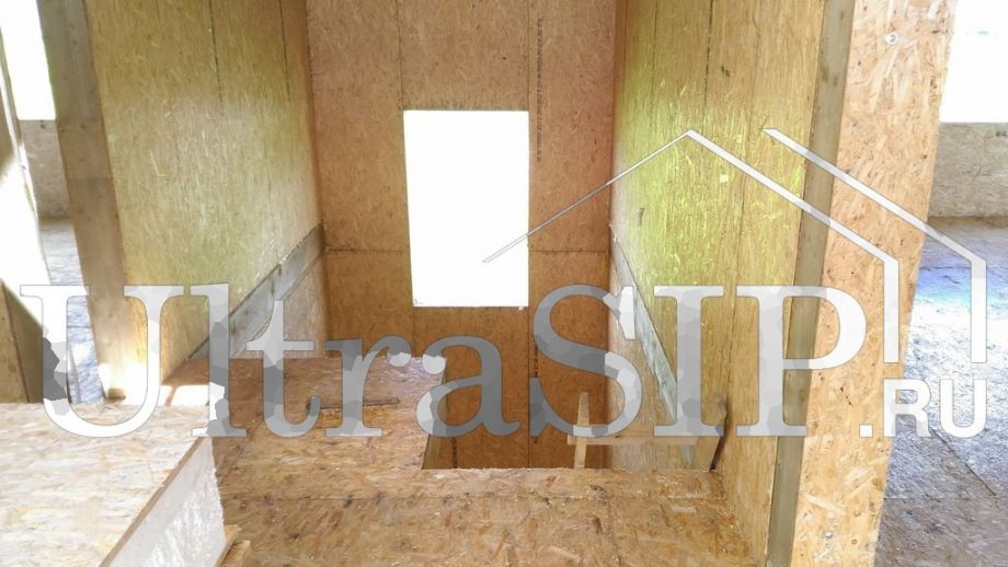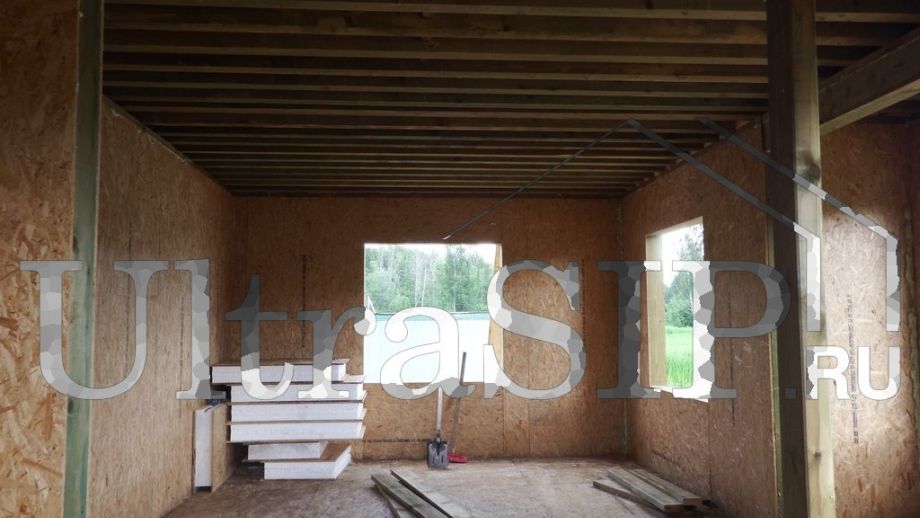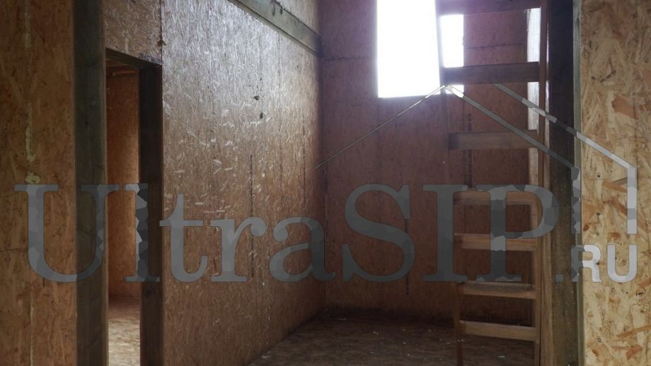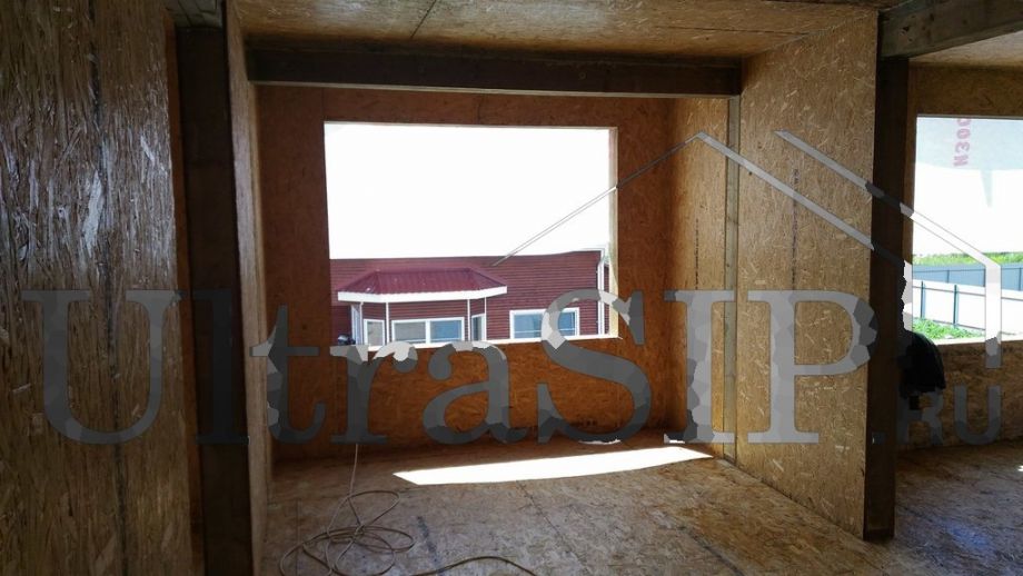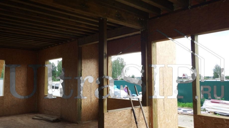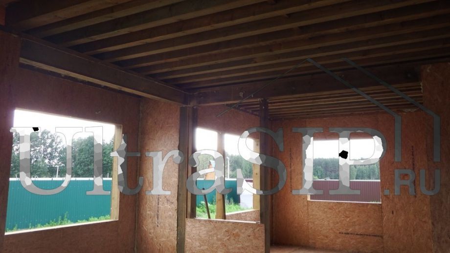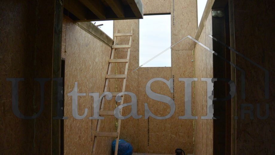 Полностью готовы стены второго этажа. Перед нами - большая гостиная второго этажа с двумя арками. Сверху виден проем для люка на чердак. Заканчиваем сборку чердачного перекрытия