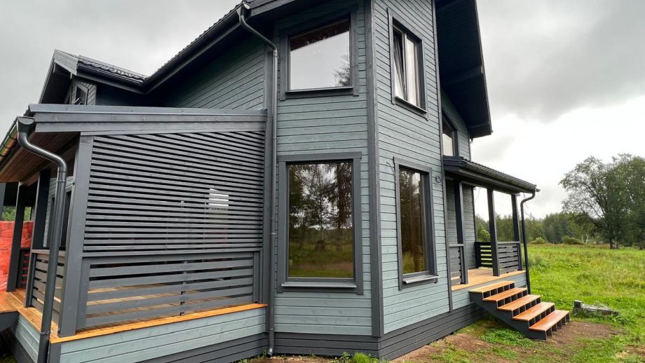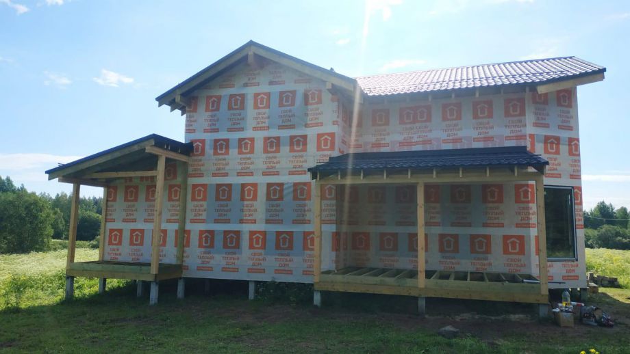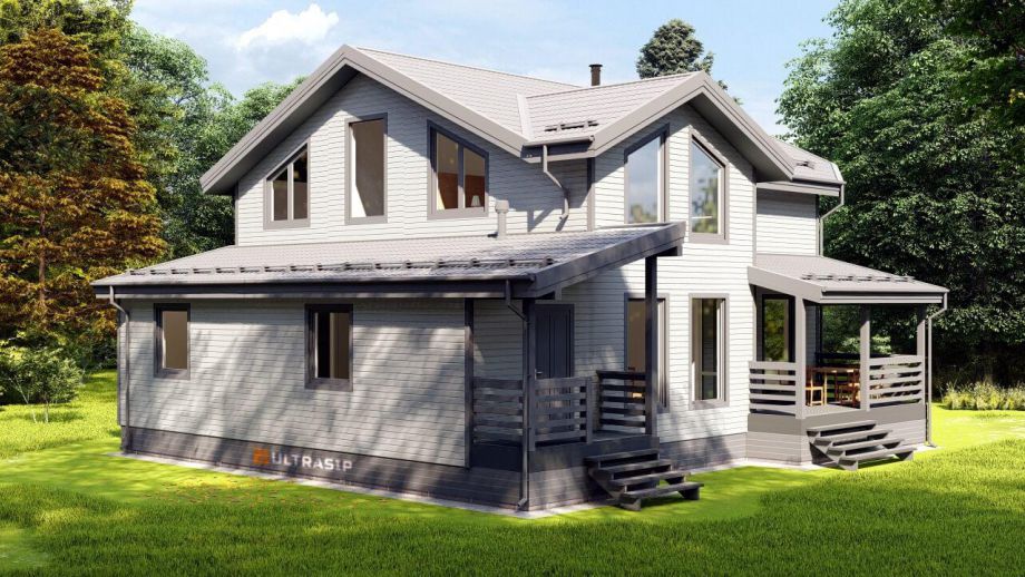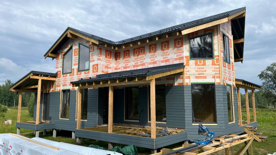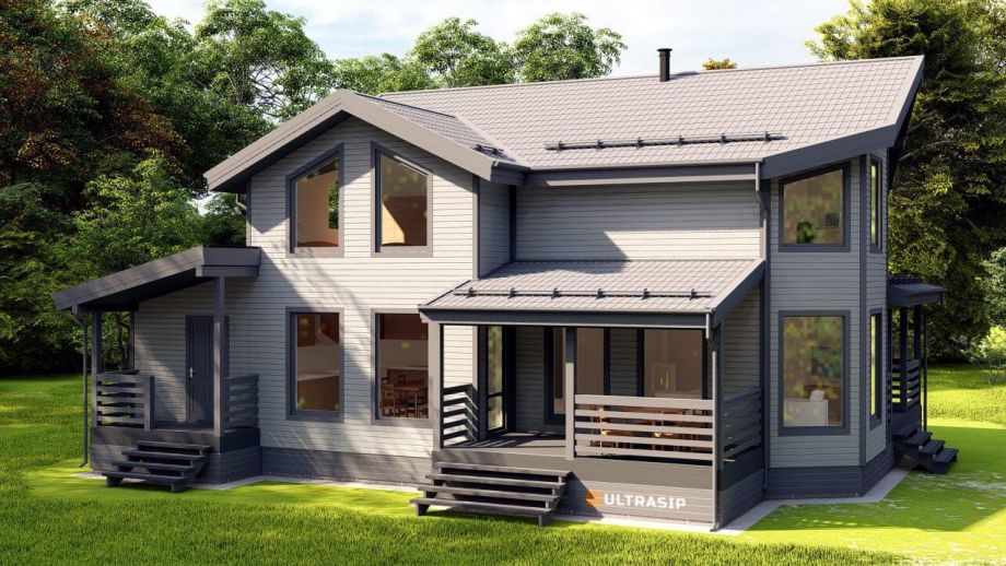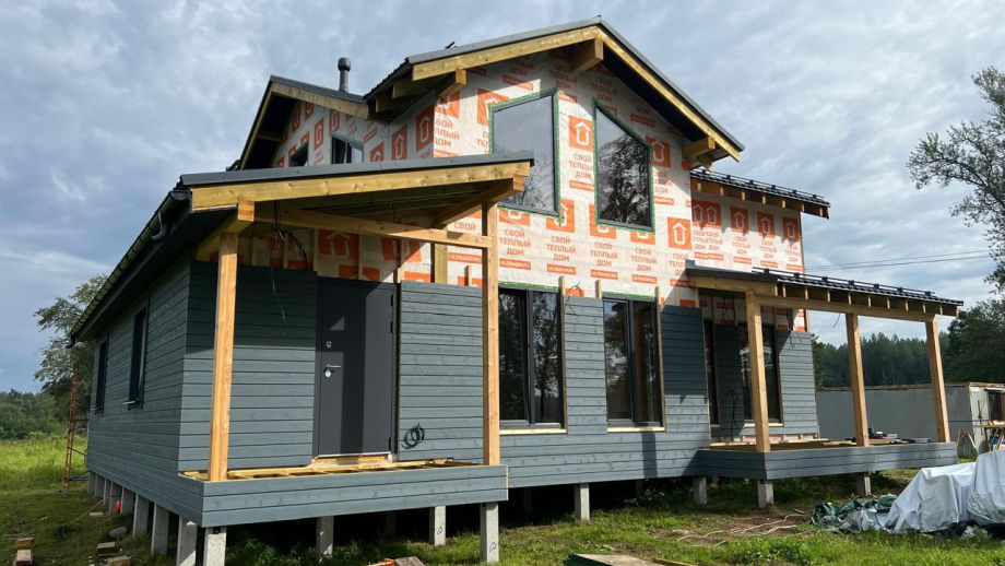В указанную цену входит закрытый теплый контур с фасадом, окнами, входной дверью, системами снегозадержания и водостока, террасой, перилами, крылечками, отделкой цоколя, вентпакетом УЛЬТРАВЕНТ, и конечно доставка, монтаж дома и все комплектующие.