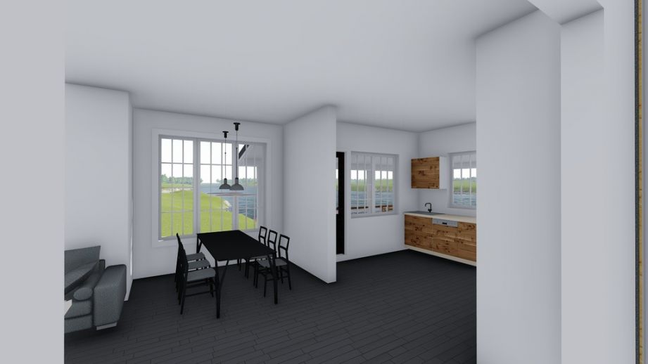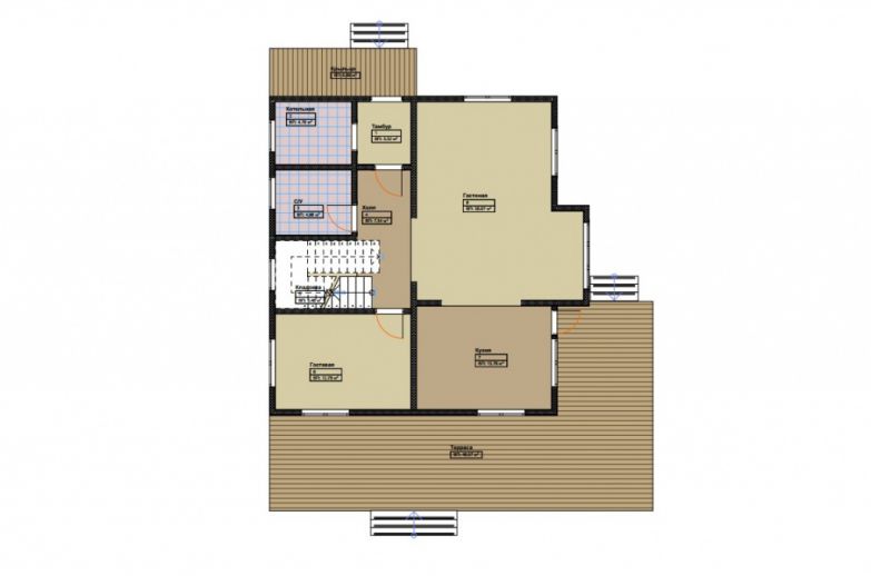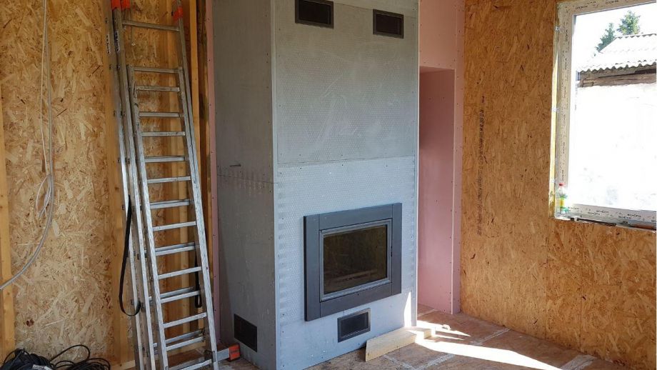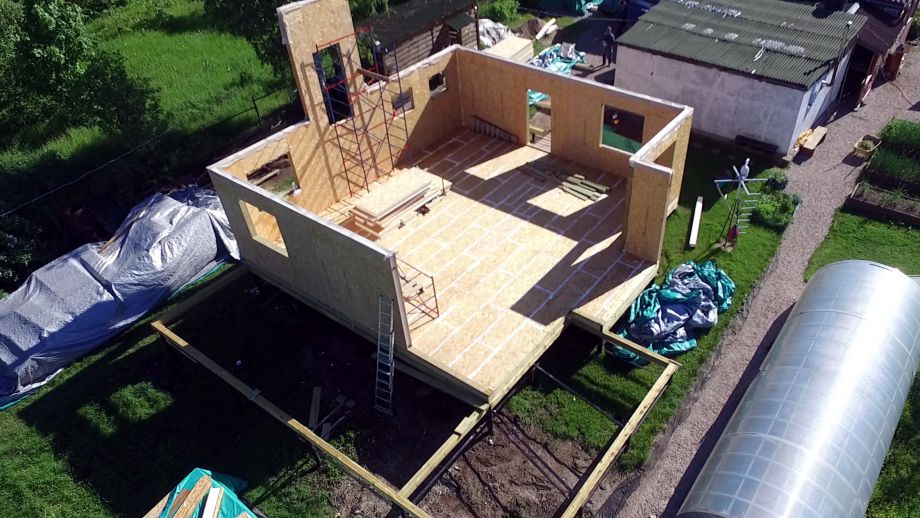 Нулевое и чердачное перекрытия SIP панелей толщиной 224 мм, межэтажное - по каркасной технологии. Наружные стены из СИП-панелей 174 мм. Перегородки внутри - каркасные, обшиты с одной стороны ОСБ 12 мм.