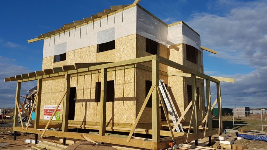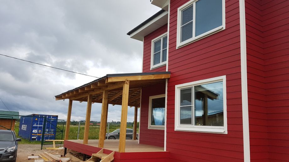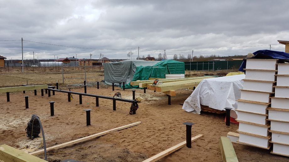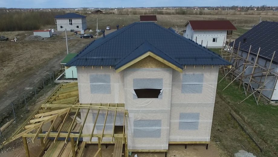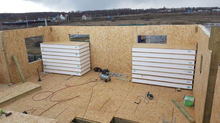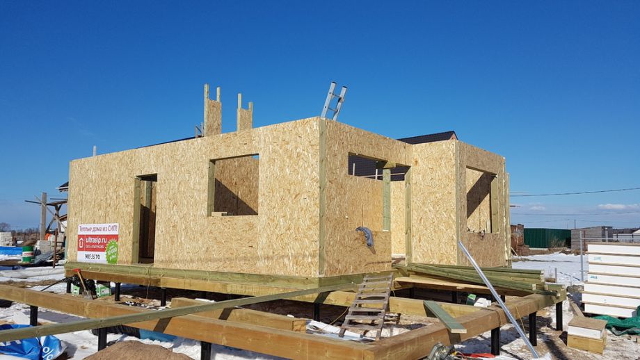 Фундамент - винтовые сваи диаметром 108 мм.,сваи обвязаны антисептированным брусом 200х200 мм. Домокомплект из СИП панелей ULTRASIP® EXTRA (OSB-3 Калевала 12 мм, пенопласт ППС-17 высокой реальной плотности - 17,5 кг/м3). Нулевое и чердачное перекрытие из SIP панелей 224 мм, несущие стены из СИП-панелей 174 мм. Внутренние перегородки комбинированные - частично СИП 174мм, частично по каркасной технологии. Пиломатериал на конструктив дома - камерной сушки влажностью 10-16%, откалиброванный на четырехстороннем станке и заранее обработанный антисептиком.