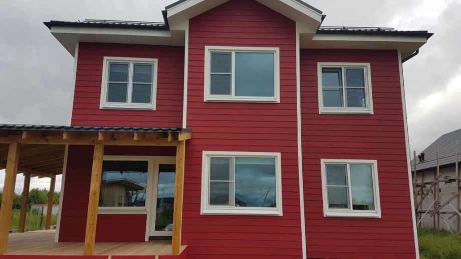 В уединенном коттеджном поселке под Низино мы построили этот продуманный и логичный дом по популярному проекту Оптимум, это его шестая реализация.