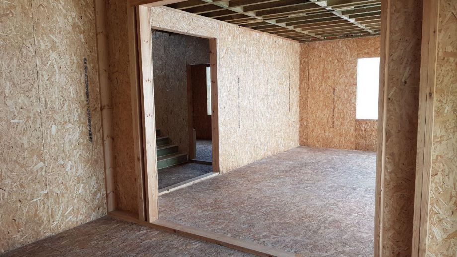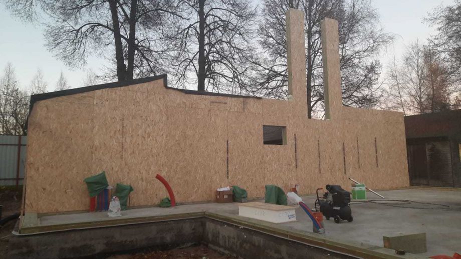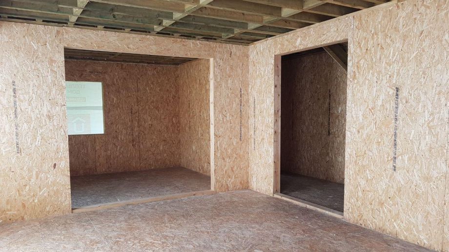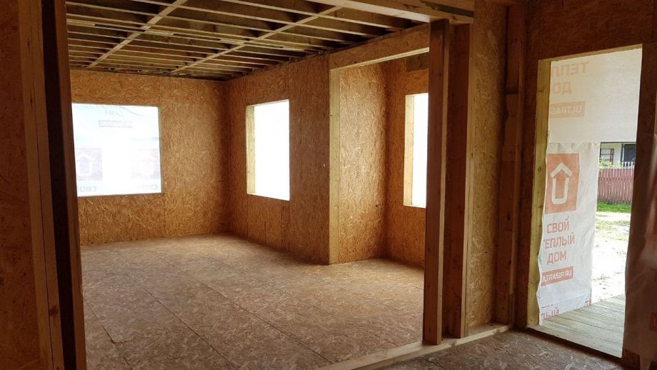 Нулевое и чердачное перекрытия SIP панелей толщиной 224 мм, межэтажное - по каркасной технологии. Наружные стены из СИП-панелей 174 мм. Перегородки внутри - каркасные, обшиты с одной стороны ОСБ 12 мм.