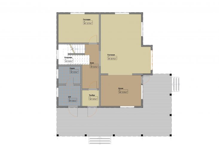 Хорошо видно террасу площадью 38м2.