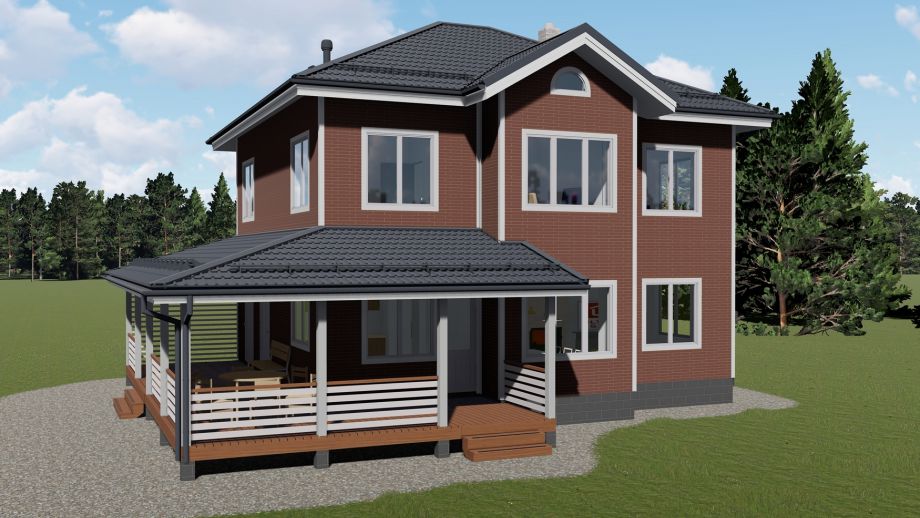 Это двадцать третья реализация известного и популярного проекта. В пригороде г. Клин, что под Москвой, в тихом месте мы построили этот комфортный и красивый дом с продуманной планировкой. Высота стен первого и второго этажа - 2,8 метра.