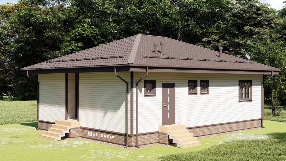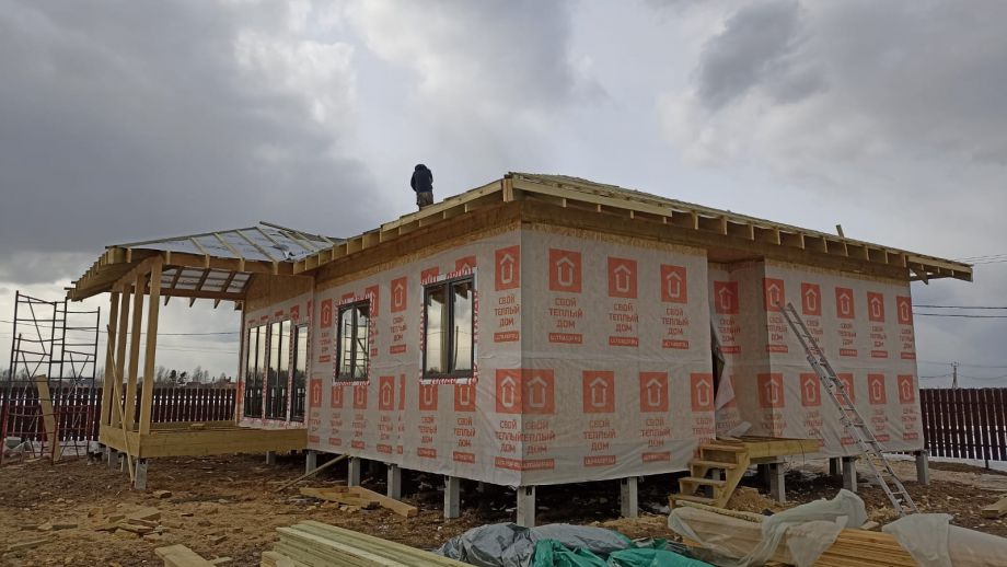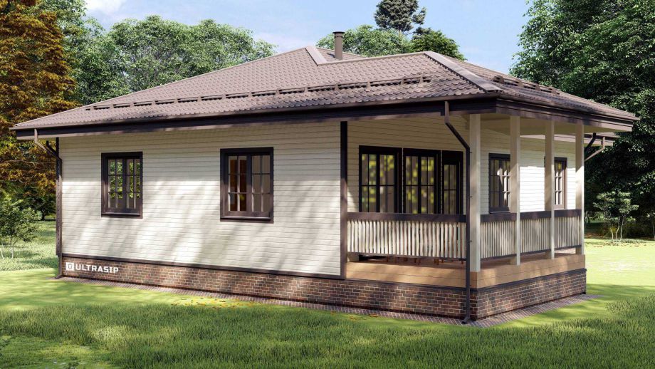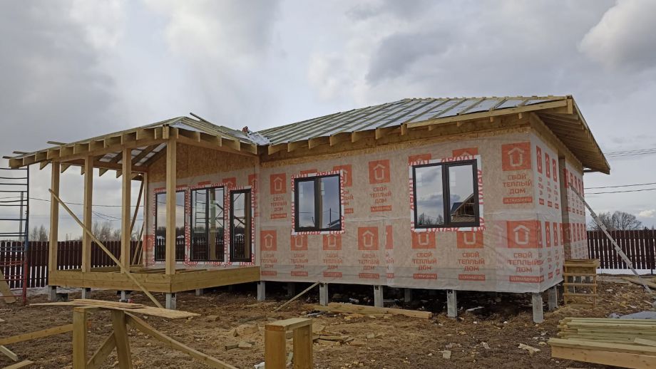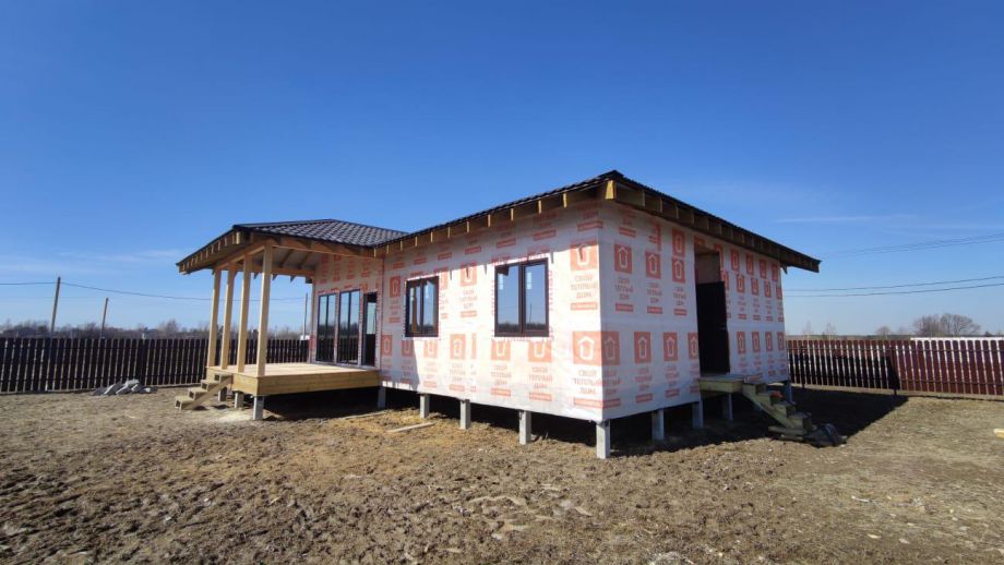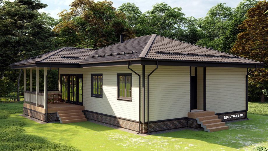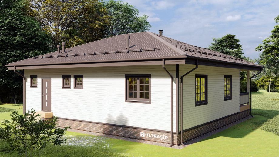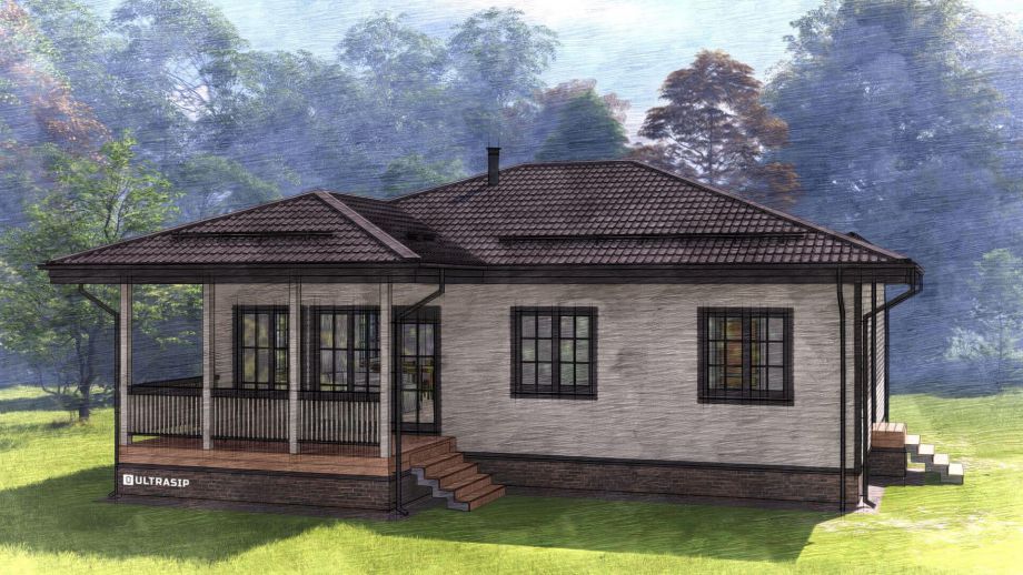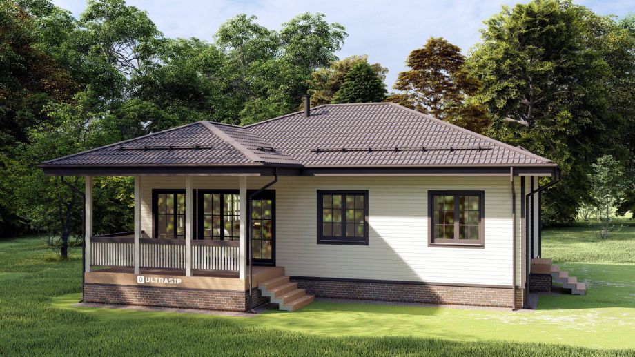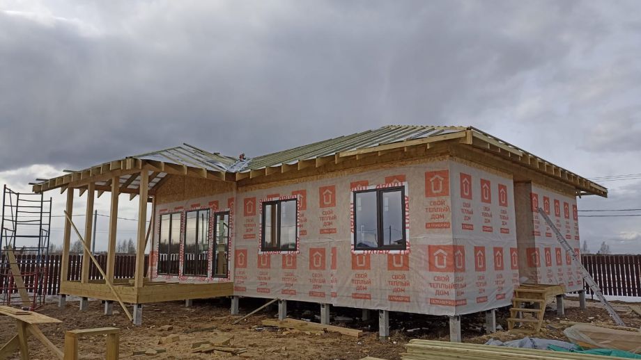 Этот продуманный одноэтажный дом из СИП-панелей построен нами в д.Никольское под Санкт-Петербургом.
