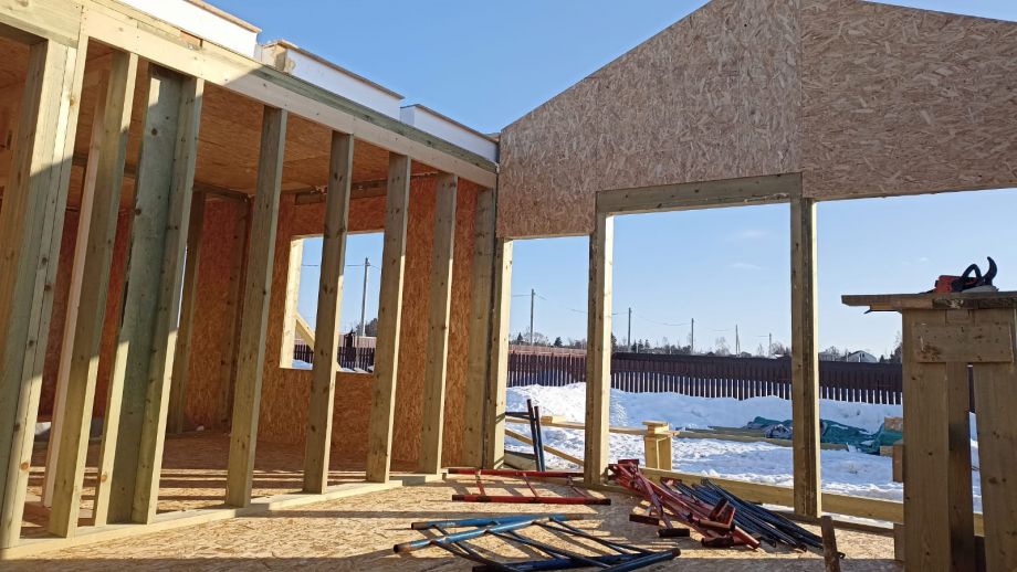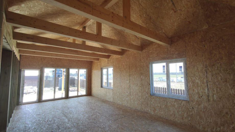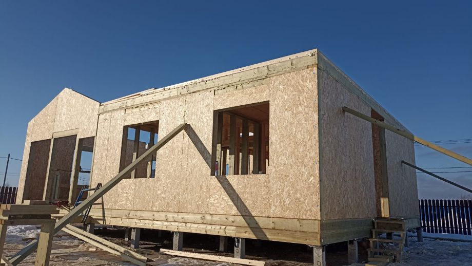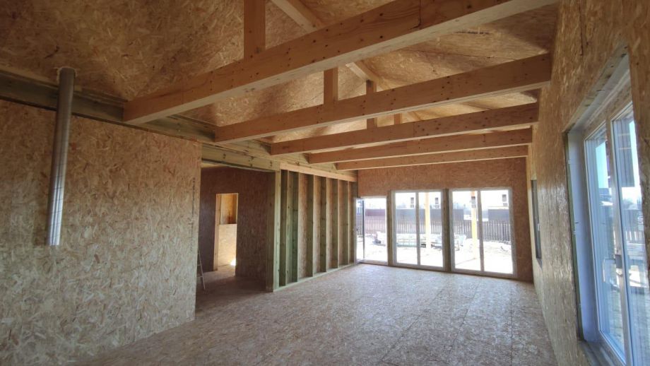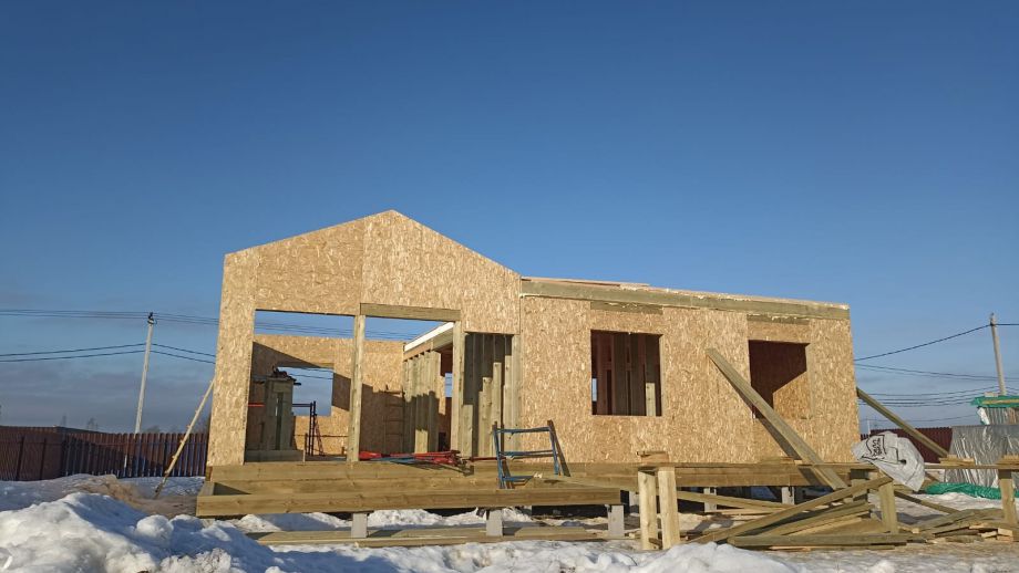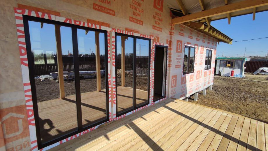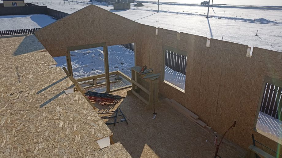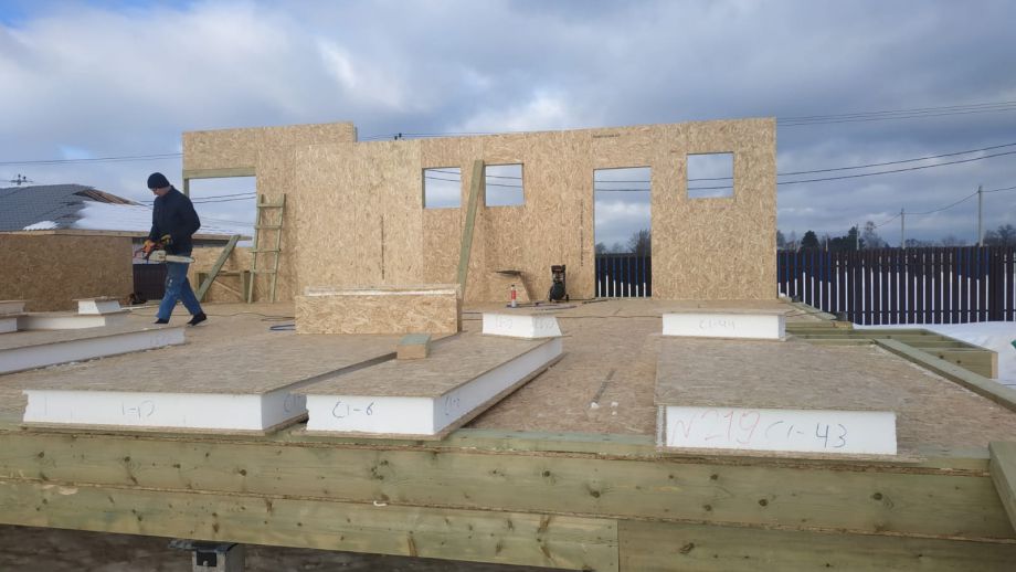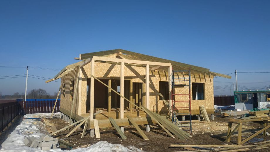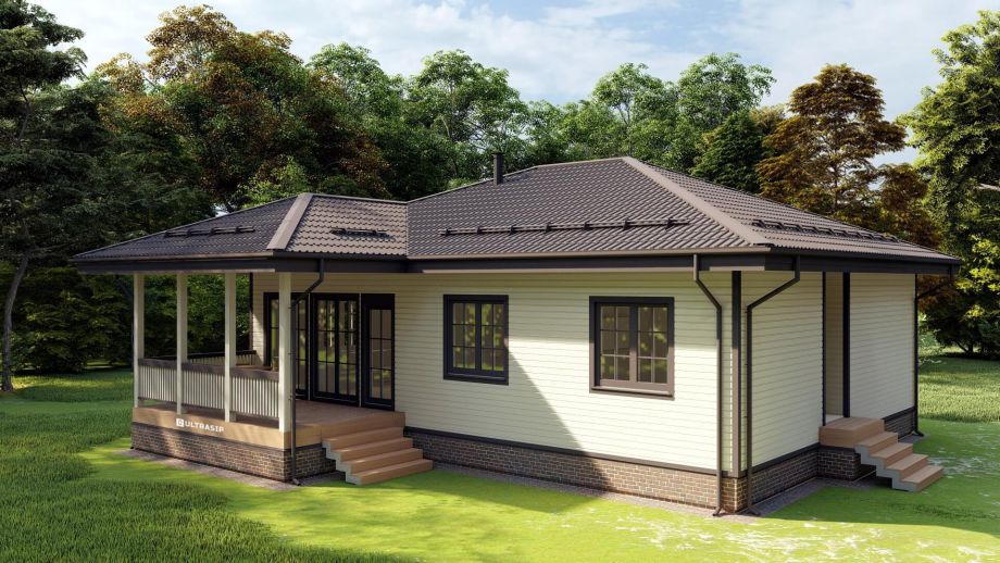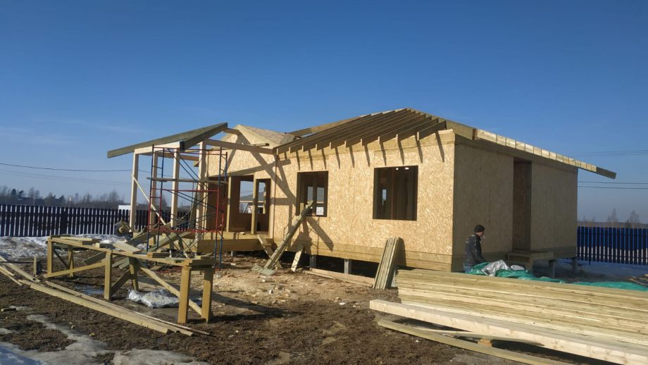Этот продуманный одноэтажный дом из СИП-панелей построен нами в д.Никольское под Санкт-Петербургом.