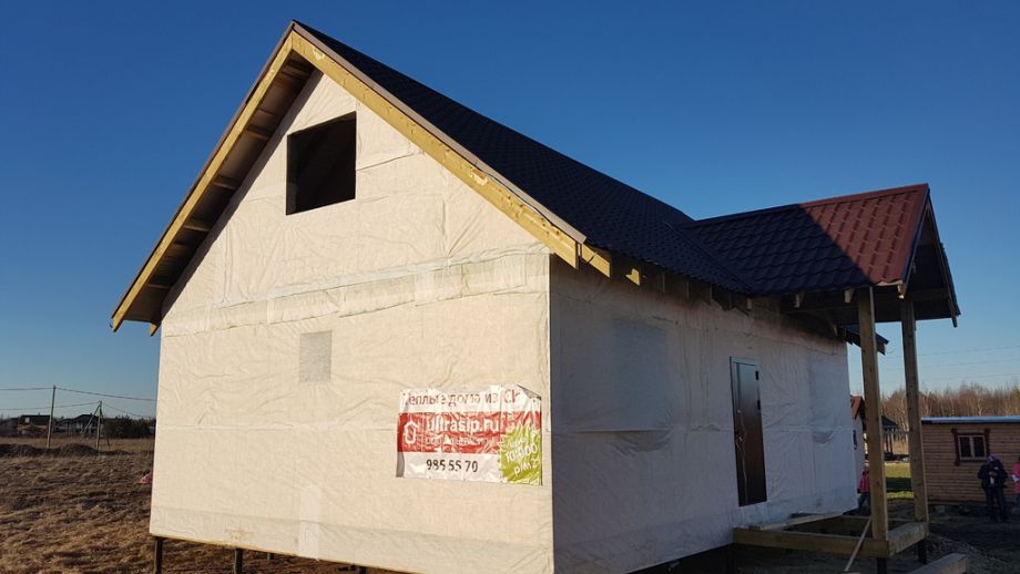 Фундамент -винтовые сваи диаметром 108мм и длиной 2,5м, обвязанные брусом 200х200 мм. Домокомплект из СИП панелей ULTRASIP® EXTRA (OSB-3 Калевала 12 мм, пенопласт ППС-17 высокой реальной плотности - 17,5 кг/м3). Нулевое и чердачное перекрытия SIP панелей толщиной 224 мм, наружные стены из СИП-панелей 174 мм. Перегородки внутри - каркасные. Пиломатериал, применяемый при сборке дома - камерной сушки влажностью 10-16%, простроган на четырехстороннем станке, и заранее, в цеху, обработан антисептиком.