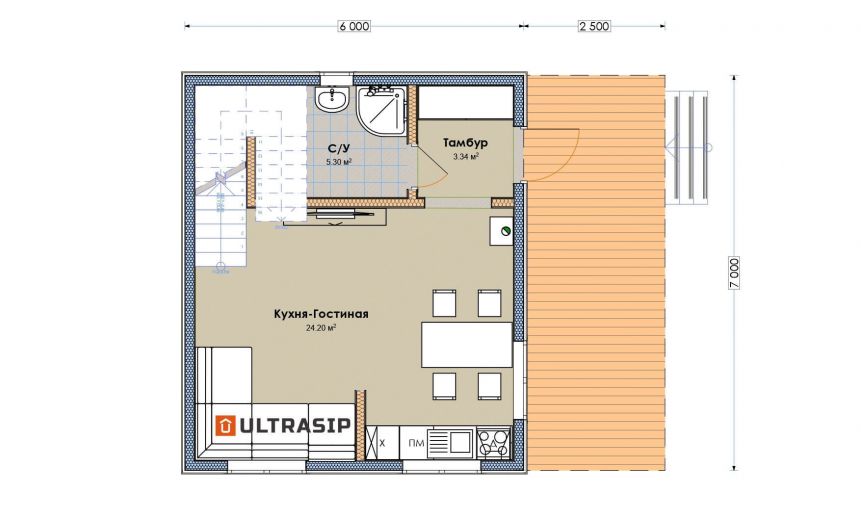 Домокомплект из СИП панелей ULTRASIP® EXTRA (OSB-3 Калевала 12 мм, пенопласт ППС-17 высокой реальной плотности - 18 кг/м3).