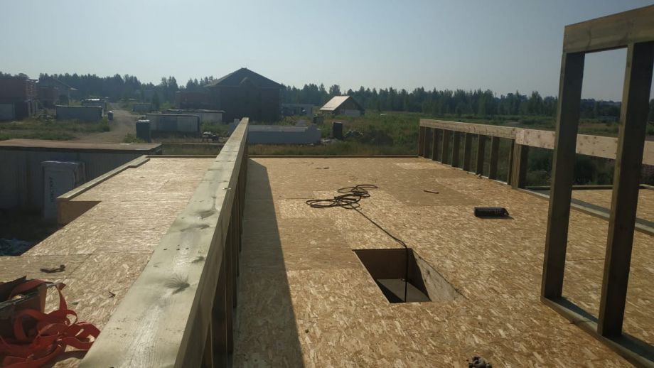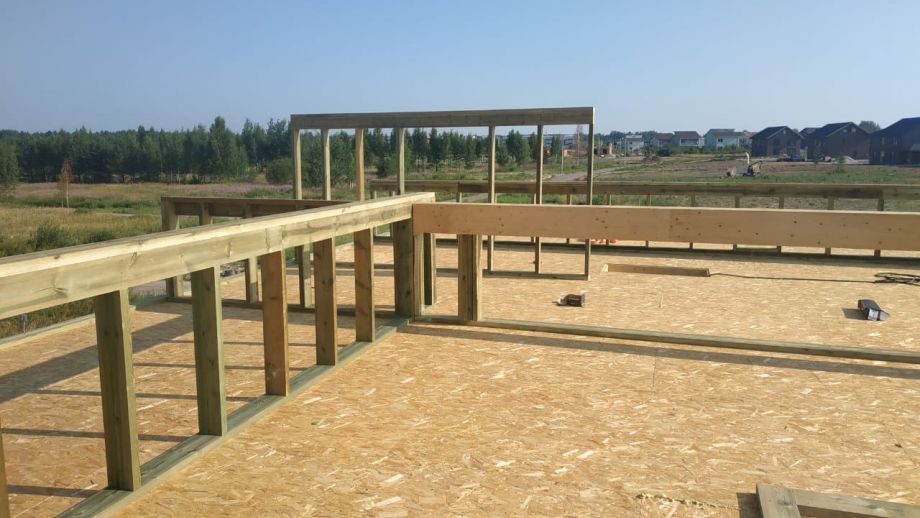 Логично, что такой теплый дом строится на энергоэффективном скандинавском фундаменте УШП, Утепленная Шведская Плита. Ее наше фундаментное подразделение смонтировало заблаговременно.