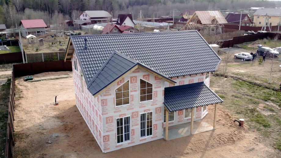 Мы построили этот солидный двухэтажный коттедж по индивидуальному проекту недалеко от Петербурга - в п. Турышкино под Санкт-Петербургом.