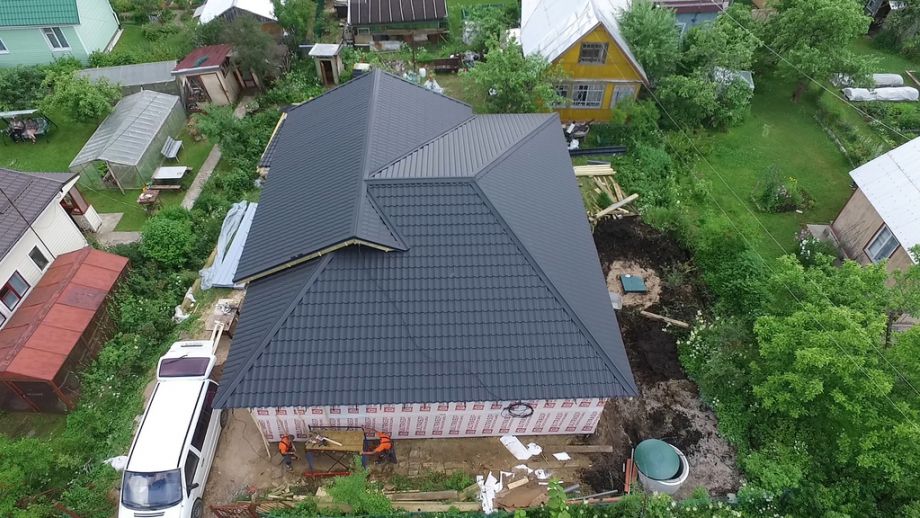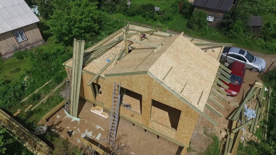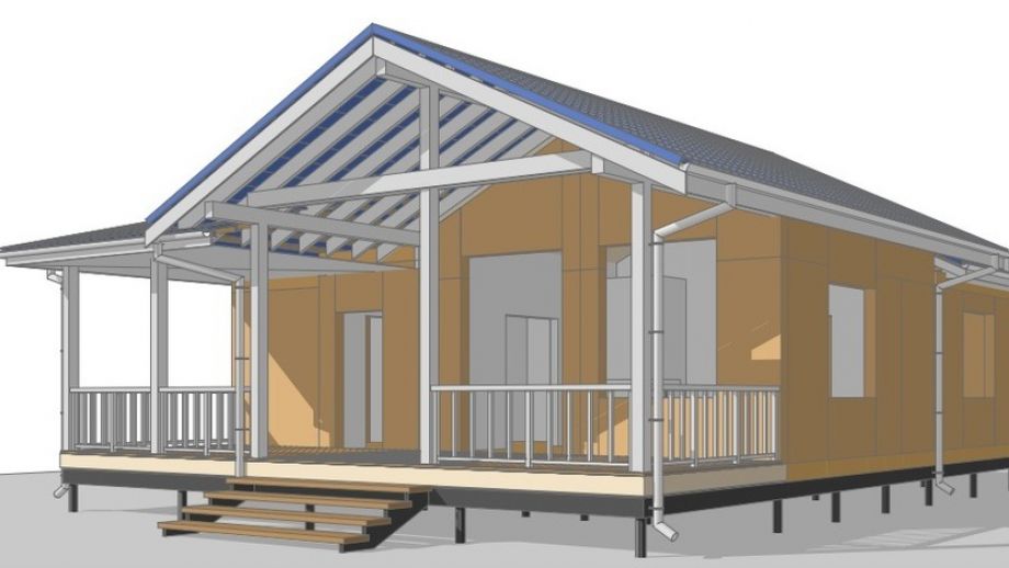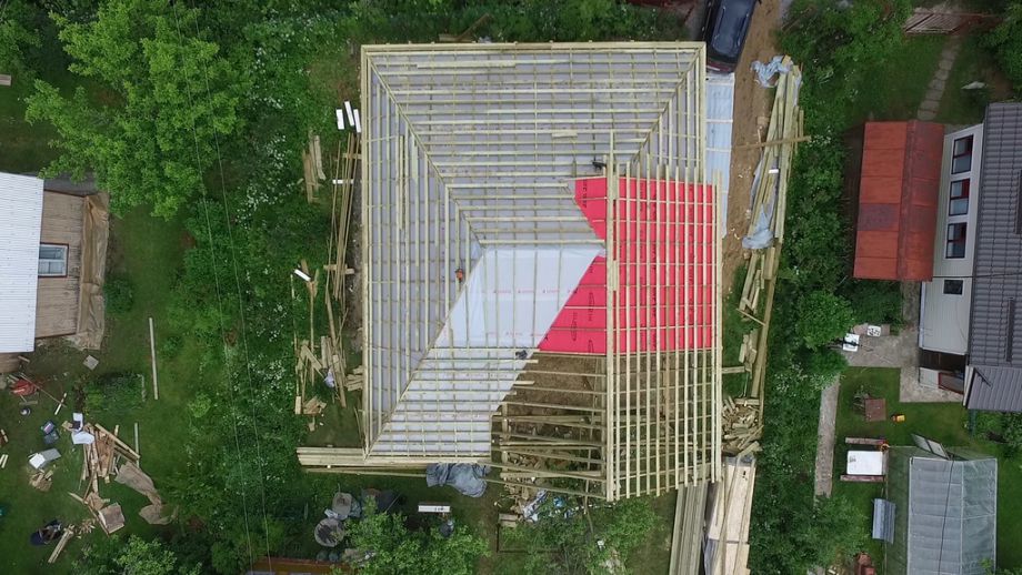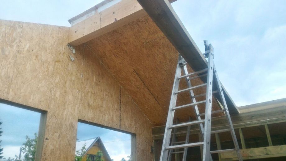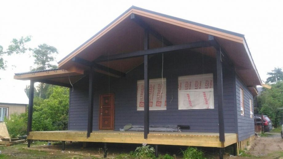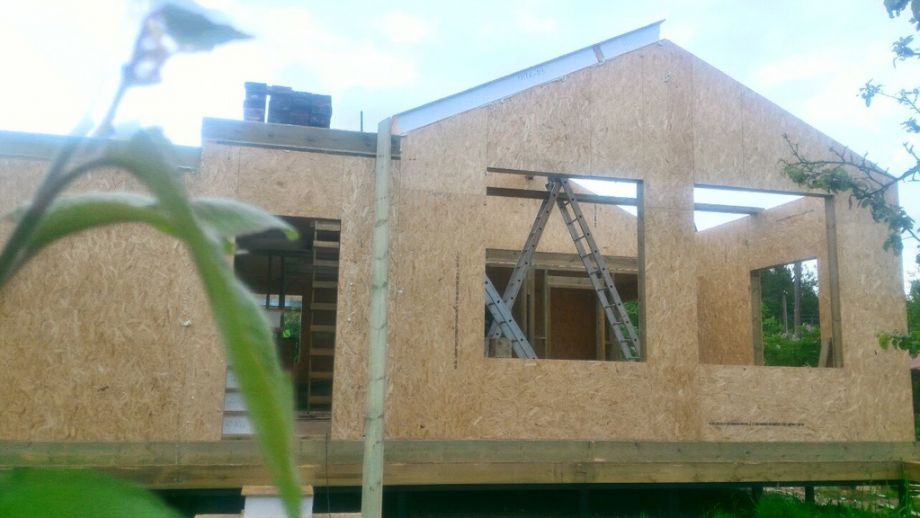 Изюминка проекта - сводчатый, "домиком", потолок гостинной и кровля - в ней сочетаются вальмовая и двускатная кровли. Фундамент на нестандартных винтовых сваях с толщиной стенки 6 мм., диаметром 108 мм., и длиной 6,5 м.(!). Они обвязаны антисептированным брусом 200х200 мм. Домокомплект из СИП панелей ULTRASIP® EXTRA (OSB-3 Калевала 12 мм, пенопласт ППС-17 высокой реальной плотности - 17,5 кг/м3). Нулевое и чердачное перекрытие из SIP панелей 224 мм, несущие стены из СИП-панелей 174 мм. Внутренние перегородки будут выполнены по каркасной технологии - стойки 45х145 с шагом 625 мм. и обшиты с одной стороны ОСБ. Традиционно для нас - пиломатериал на конструктив дома применен камерной сушки влажностью 10-16%, откалиброванный на четырехстороннем станке и заранее обработанный антисептиком.