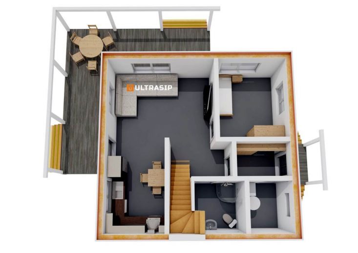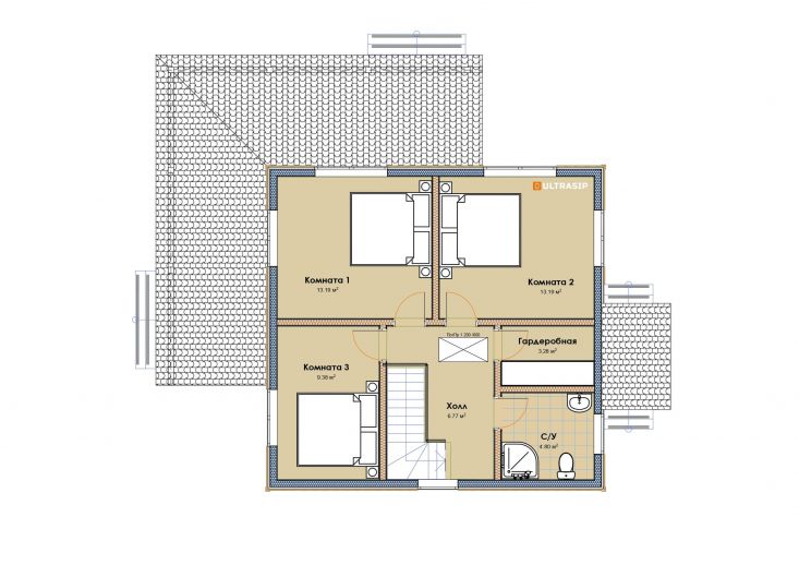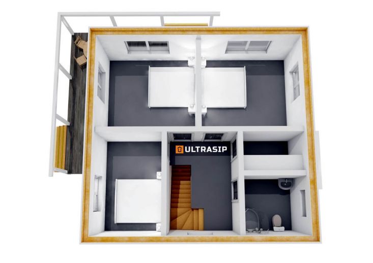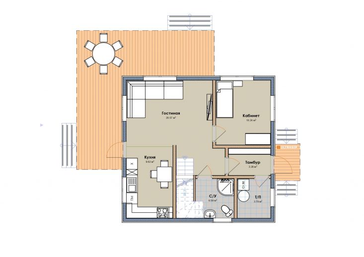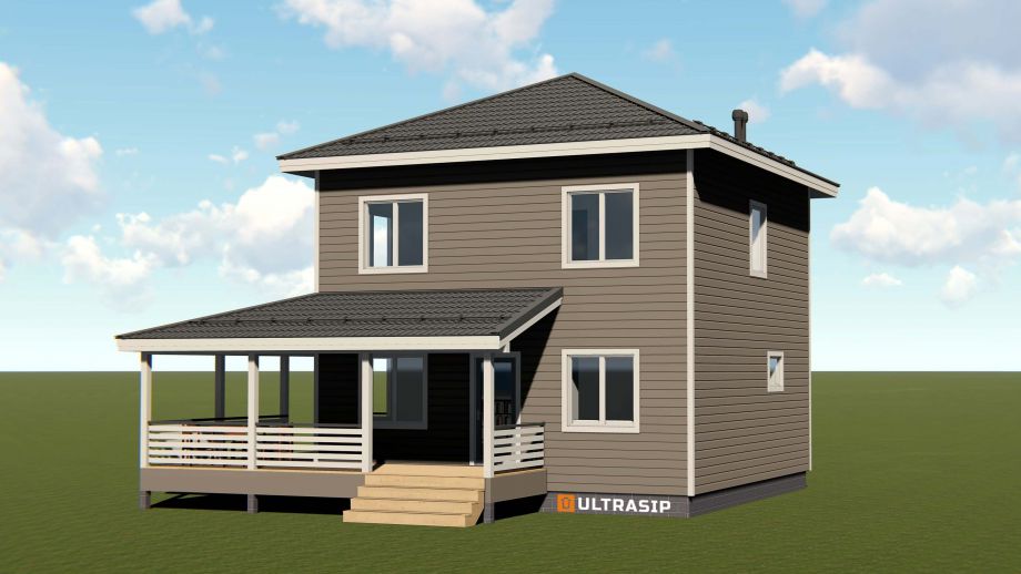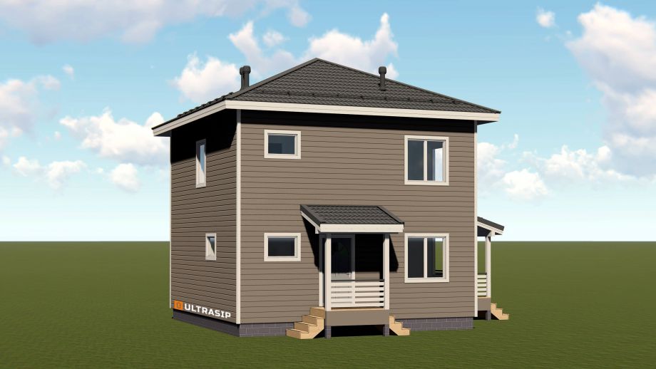 Несмотря на небольшие размеры дома, в доме предусмотрено четыре спальни, два санузла, гардеробная и достойная кухня-гостиная площадью 30м2.