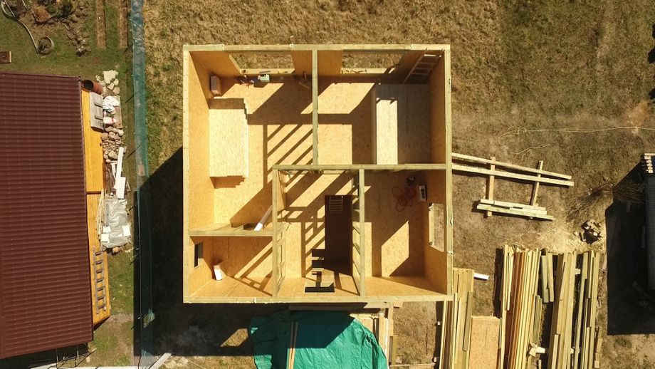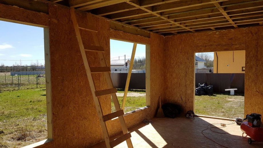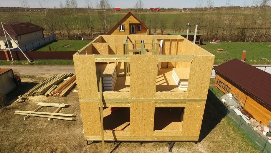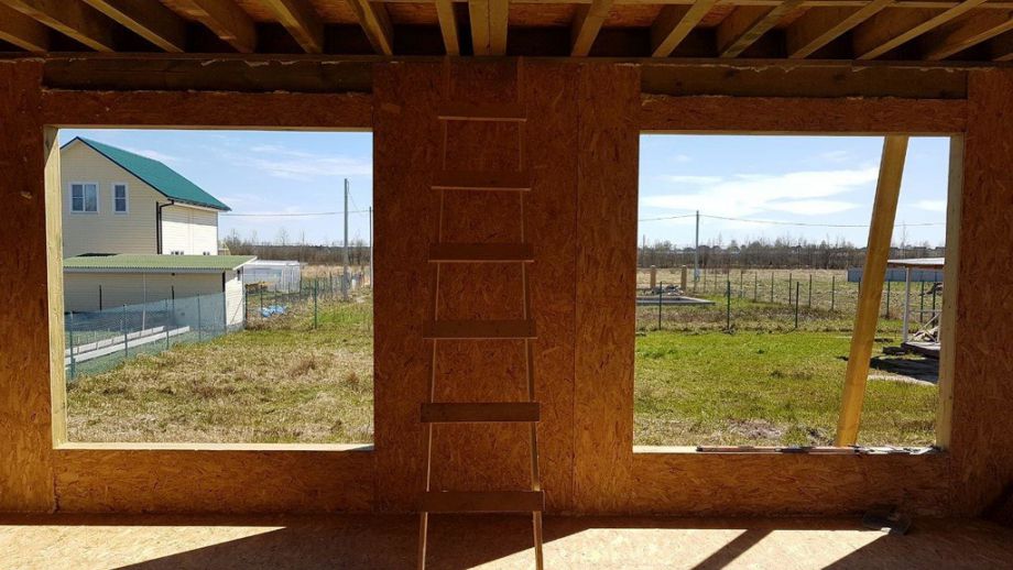 Нулевое и чердачное перекрытия SIP панелей толщиной 224 мм, межэтажное - по каркасной технологии. Наружные стены из СИП-панелей 174 мм. Перегородки внутри - каркасные, обшиты с одной стороны ОСБ 12 мм.