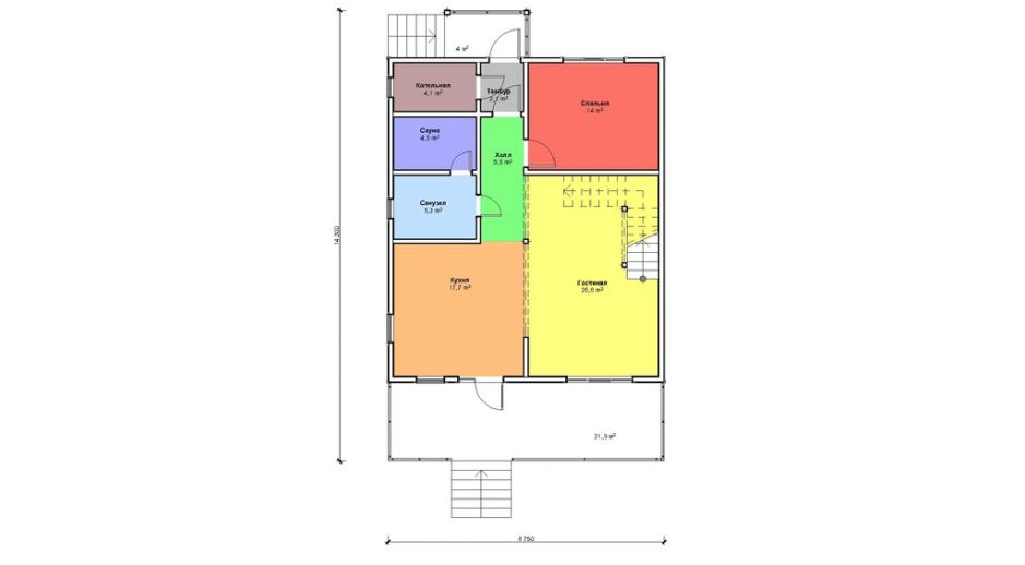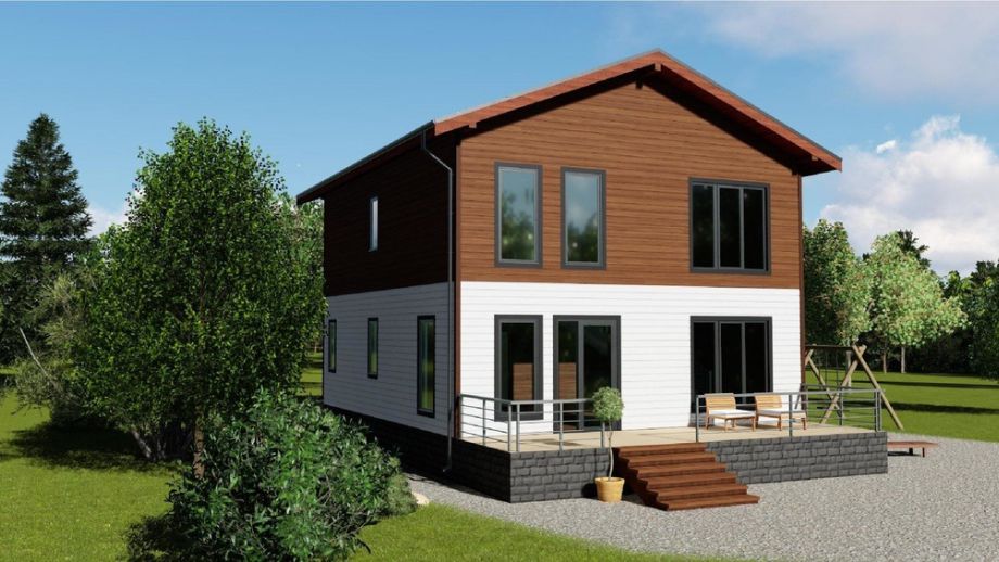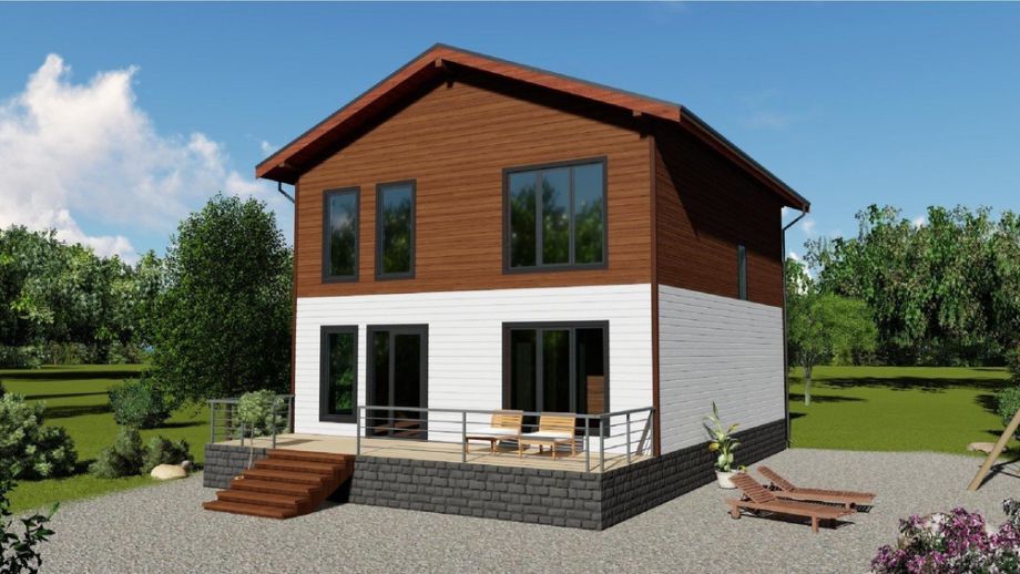 Интересна планировка - редкий пока в российских домах "второй свет" сочетается с еще более редкой в наших дождливых широтах открытой террасой. Межэтажное перекрытие из LVL-бруса сечением 51х300 обеспечивает абсолютную монолитность полу второго этажа, соответственно повыщает комфорт проживания.