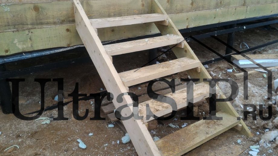 Метровый перепад высот на участке потребовал усиления фундамента,и мы обвязали сваи швеллером и укосинами. В наиболее высокой части подпольного пространства предусмотрен объем для хранения.