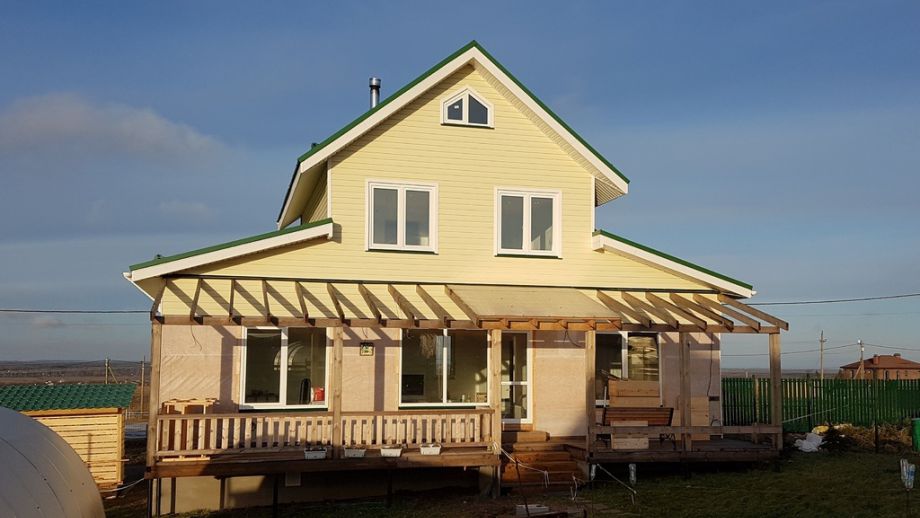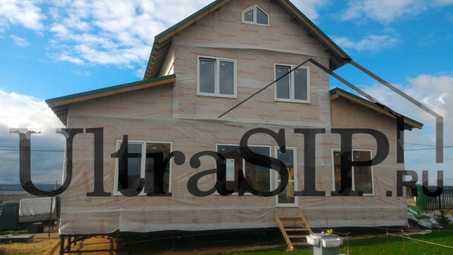 Дом из SIP-панелей в типично американском стиле построен нами по индивидуальному проекту. Дом двухэтажный, для круглогодичного проживания, площадью 135 м². Фундамент на винтовых сваях.