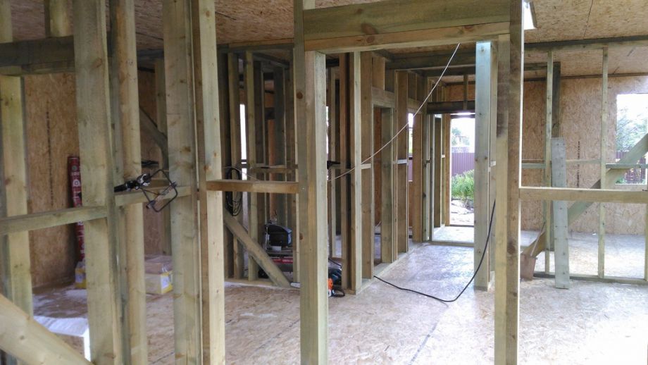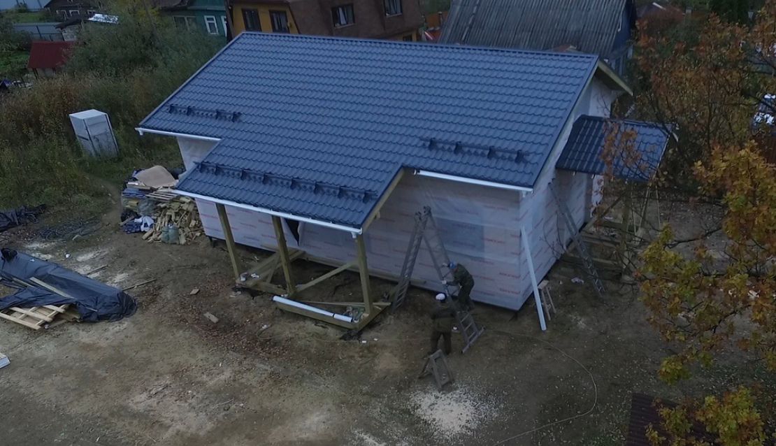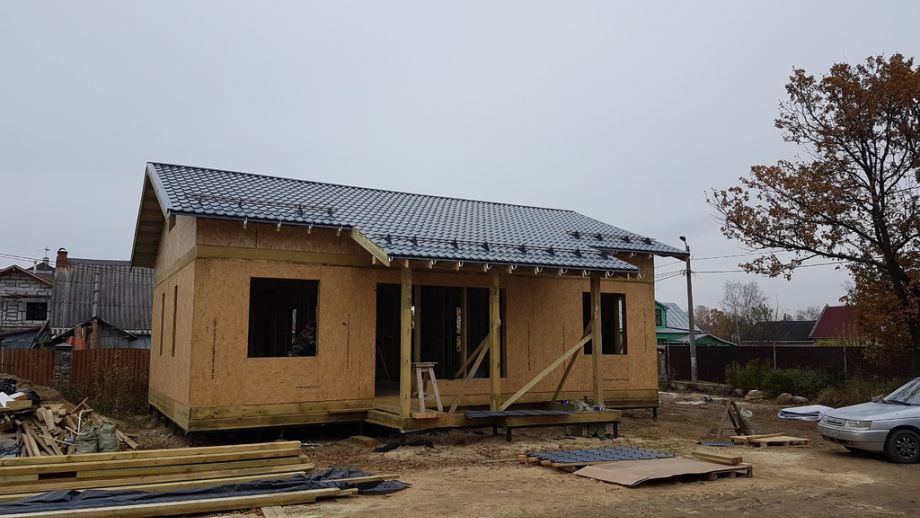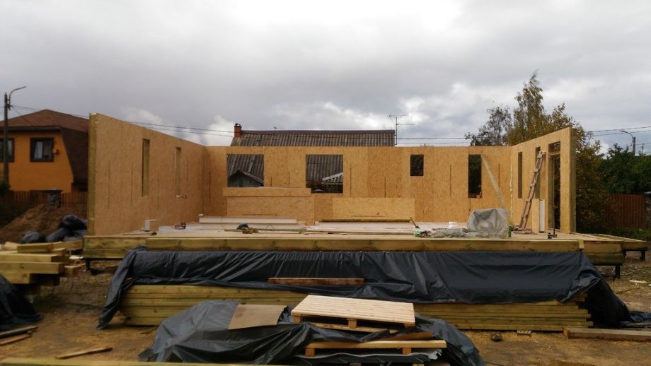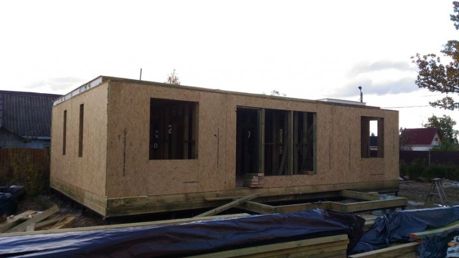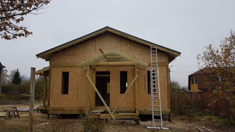 Практически в черте города, в элитном пригороде Санкт-Петербурга - Стрельне, мы построили одноэтажный дом с ярко выраженными финскими нотками. Винтовой фундамент на сваях диаметром 108мм и длиной 2,5м, обвязанных антисептированным брусом 200х200 мм. Домокомплект из СИП панелей (OSB-3 Калевала 12 мм, пенопласт завода "Новопласт" ПСБ -С25Ф высокой реальной плотности - 17 кг/м3, клей ПУР производства BASF, Германия). Нулевое и чердачное перекрытие из SIP панелей 224 мм, несущие стены из СИП-панелей 174 мм. Внутренние перегородки - каркасные. Пиломатериал из отборного пиловочника хвойных пород, высушен в камере до влажности 12-16%, калиброван на рейсмусном станке, обработан антисептиком.