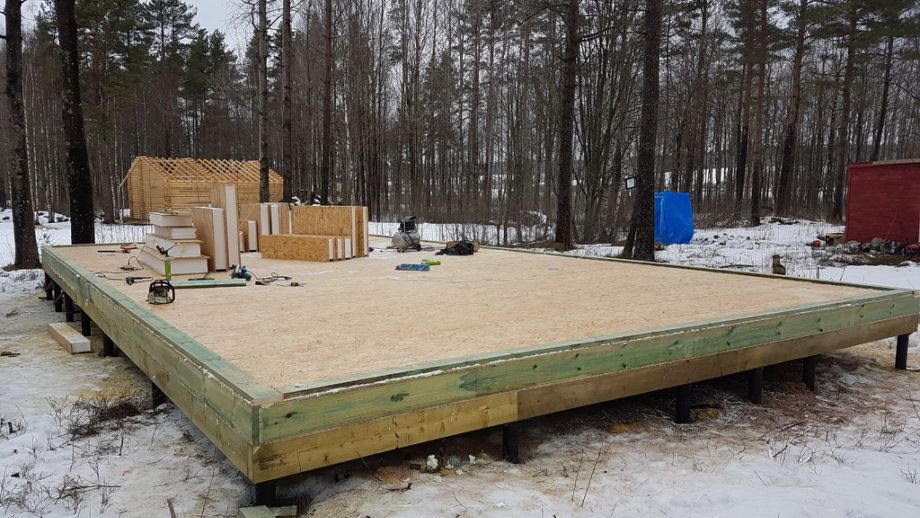 Фундамент на винтовых сваях диаметром 108мм и длиной 2,5м, обвязанных брусом 200х200 мм. Домокомплект из наших фирменных СИП панелей ULTRASIP® EXTRA (OSB-3 Калевала 12 мм, пенопласт ППС-17 высокой реальной плотности - 17,5 кг/м3). Нулевое и чердачное перекрытия SIP панелей толщиной 224 мм, наружные стены из СИП-панелей 174 мм. Перегородки внутри - каркасные. Пиломатериал, применяемый при сборке дома - камерной сушки влажностью 10-16%, простроган на четырехстороннем станке, и заранее, в цеху, обработан антисептиком.