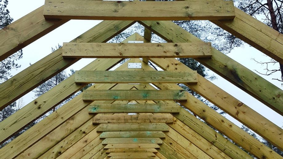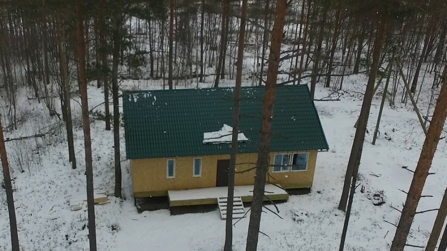 Среди живописных сосен, в уютном коттеджном поселке мы построили этот одноэтажный СИП-дом с финскими нотками в проекте. Две спальни, кухня-гостиная площадью 40 м2, небольшая открытая терраса. Высота стен - 2.8 м. Изюминка дома - потенциально эксплуатируемая стропильная система, которая после утепления минватой превращается в мансарду площадью 50 м2.