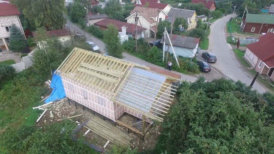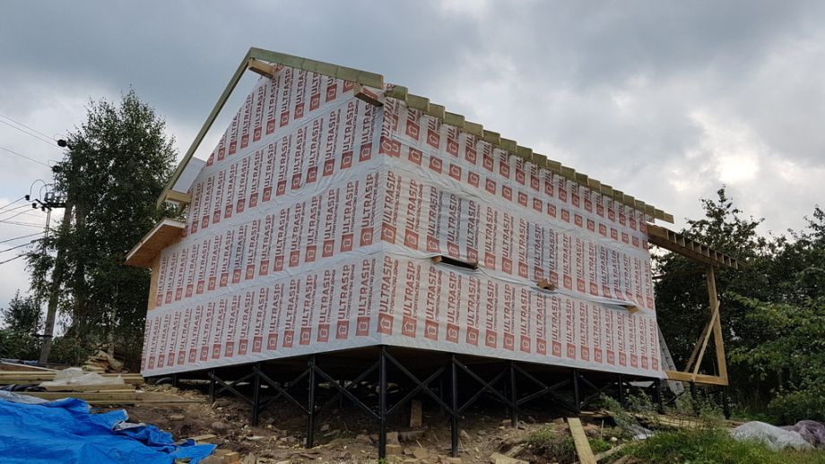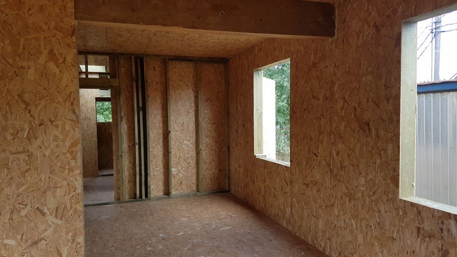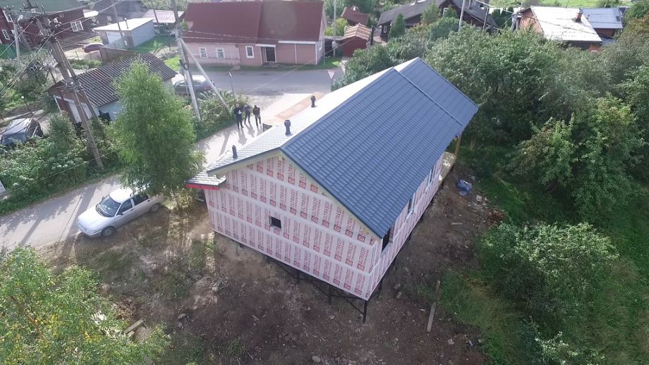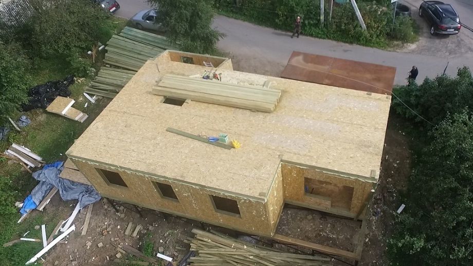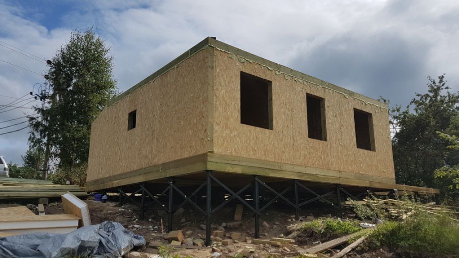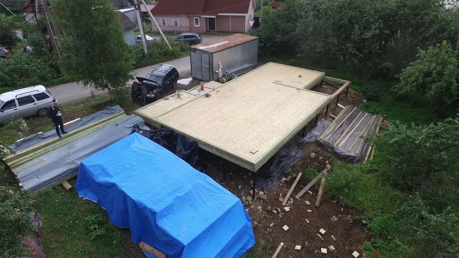 Фундамент - винтовые сваи диаметром 108мм.. Домокомплект из СИП панелей ULTRASIP® EXTRA (OSB-3 Калевала 12 мм, пенопласт ППС-17 высокой реальной плотности - 17,5 кг/м3). Нулевое и чердачное перекрытие - SIP панели толщиной 224 мм, наружные стены из СИП-панелей 174 мм. Перегородки внутри - каркасные, обшиты ОСБ 12 мм. Пиломатериал, применяемый при сборке дома - камерной сушки влажностью 10-16%, простроган на четырехстороннем станке, и заранее, в цеху, обработан антисептиком. Почему это важно - можно прочитать здесь.