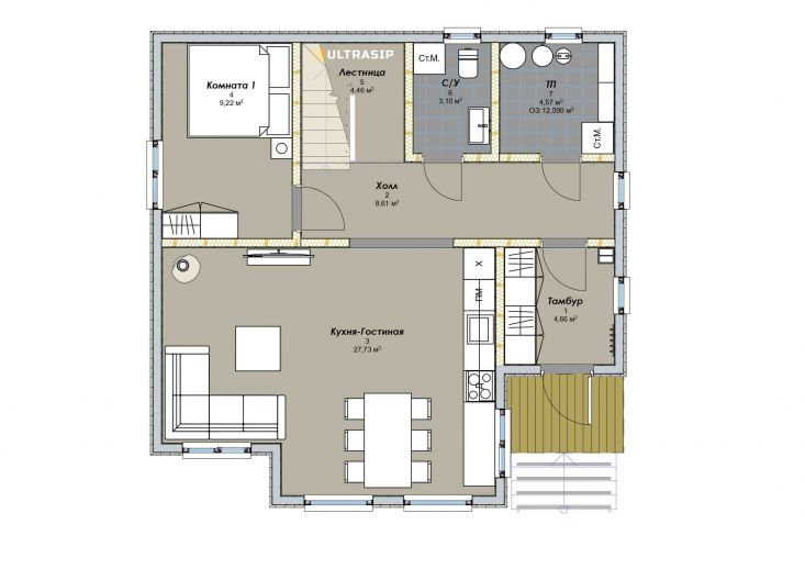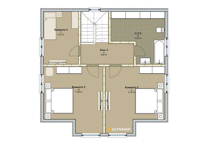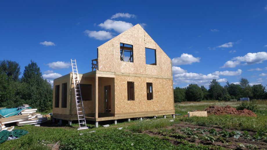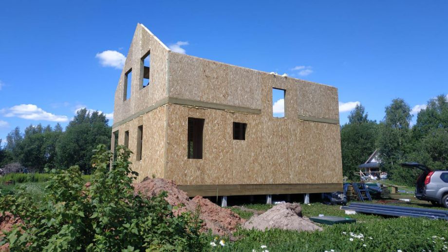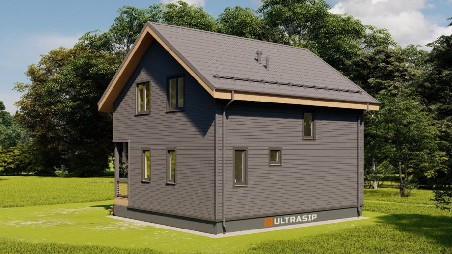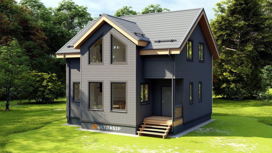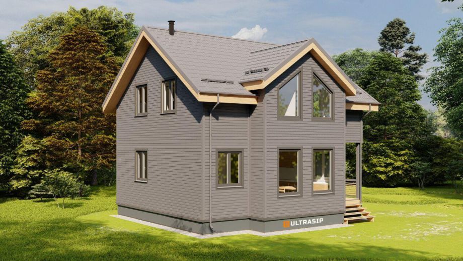 Дом построен в комплектации Оптимум - это дом с фасадом, окнами, входной дверью, системами снегозадержания и водостока, террасой, балконом, перилами, крылечками, отделка цоколя, вентпакет УЛЬТРАВЕНТ, и конечно доставка и качественная сборка со всеми комплектующими.
