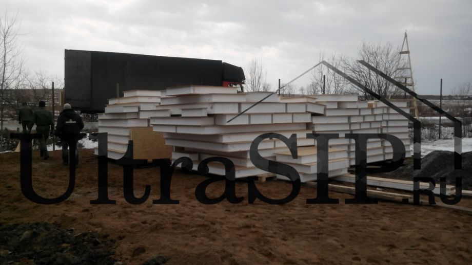 Цокольное и чердачное перекрытия - СИП-панели толщиной 224 мм, внешние стены - СИП-панели 174 мм;