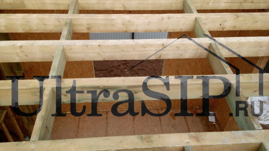 Межэтажное перекрытие по каркасной технологии ( балки 100х200, черновой пол из ОСБ 18мм.);